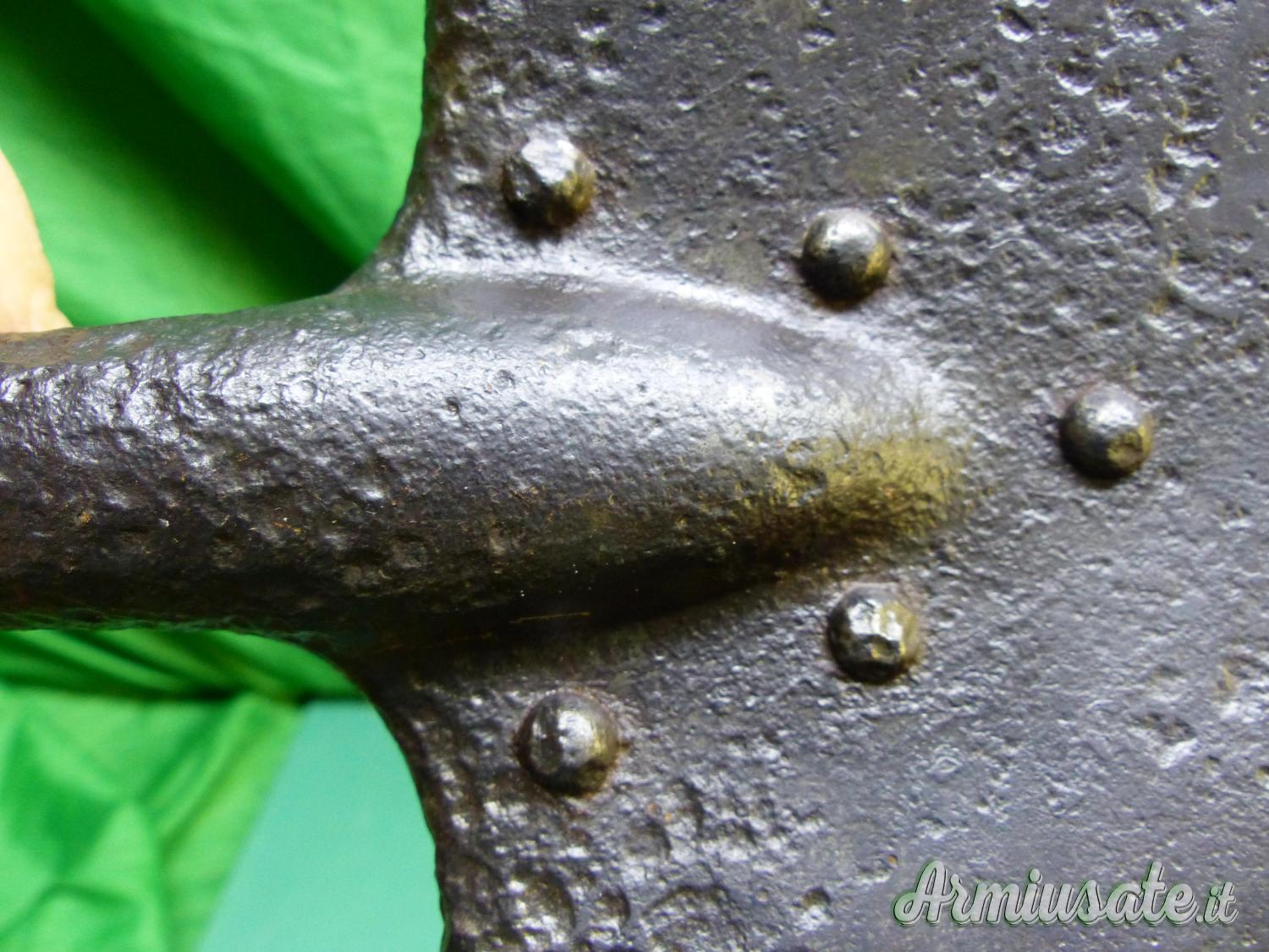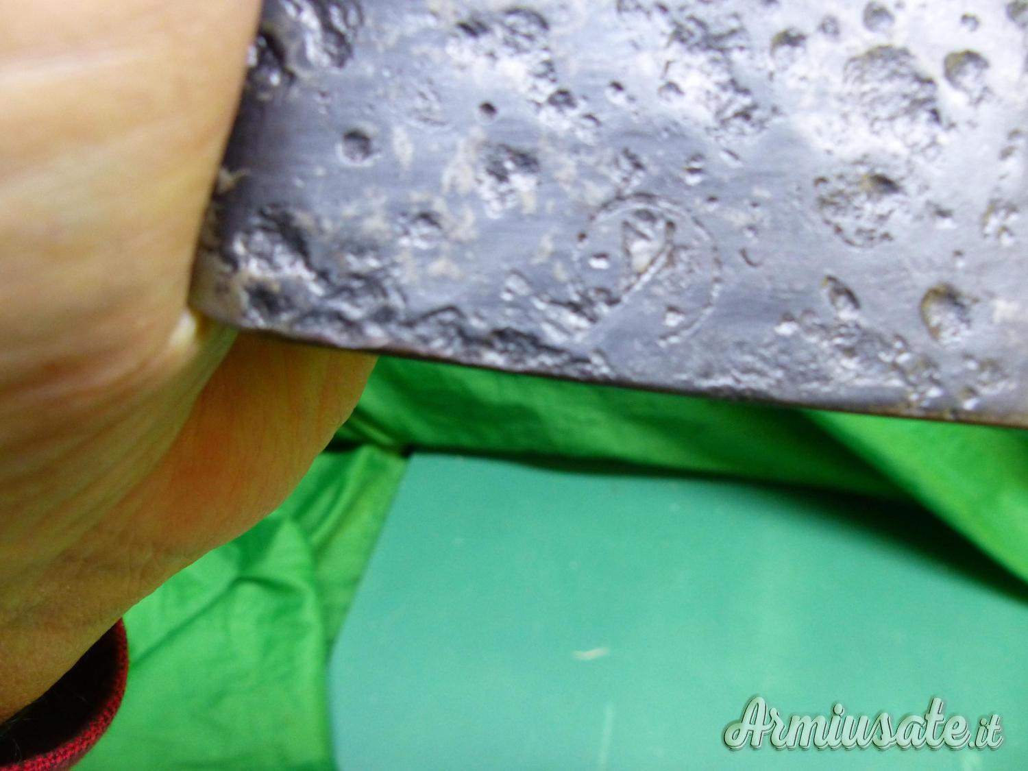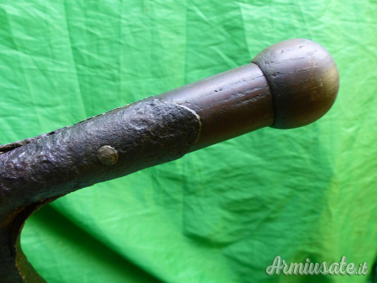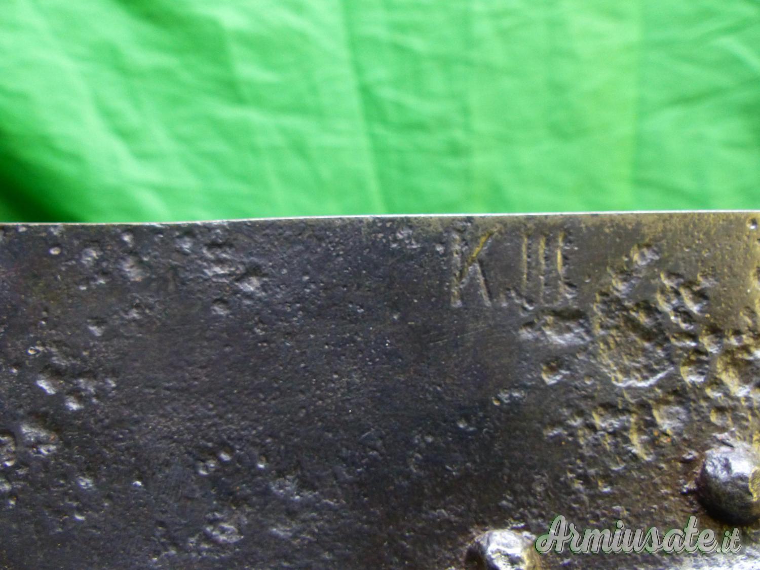 Attrezzo / Paletta russa, con 2 marci e la data 1915. La impugnatura di legno non è coeva ma rifatta ad imitazione della paletta tedesca per mitragliere .vds il confronto nella ultima foto. Rara.