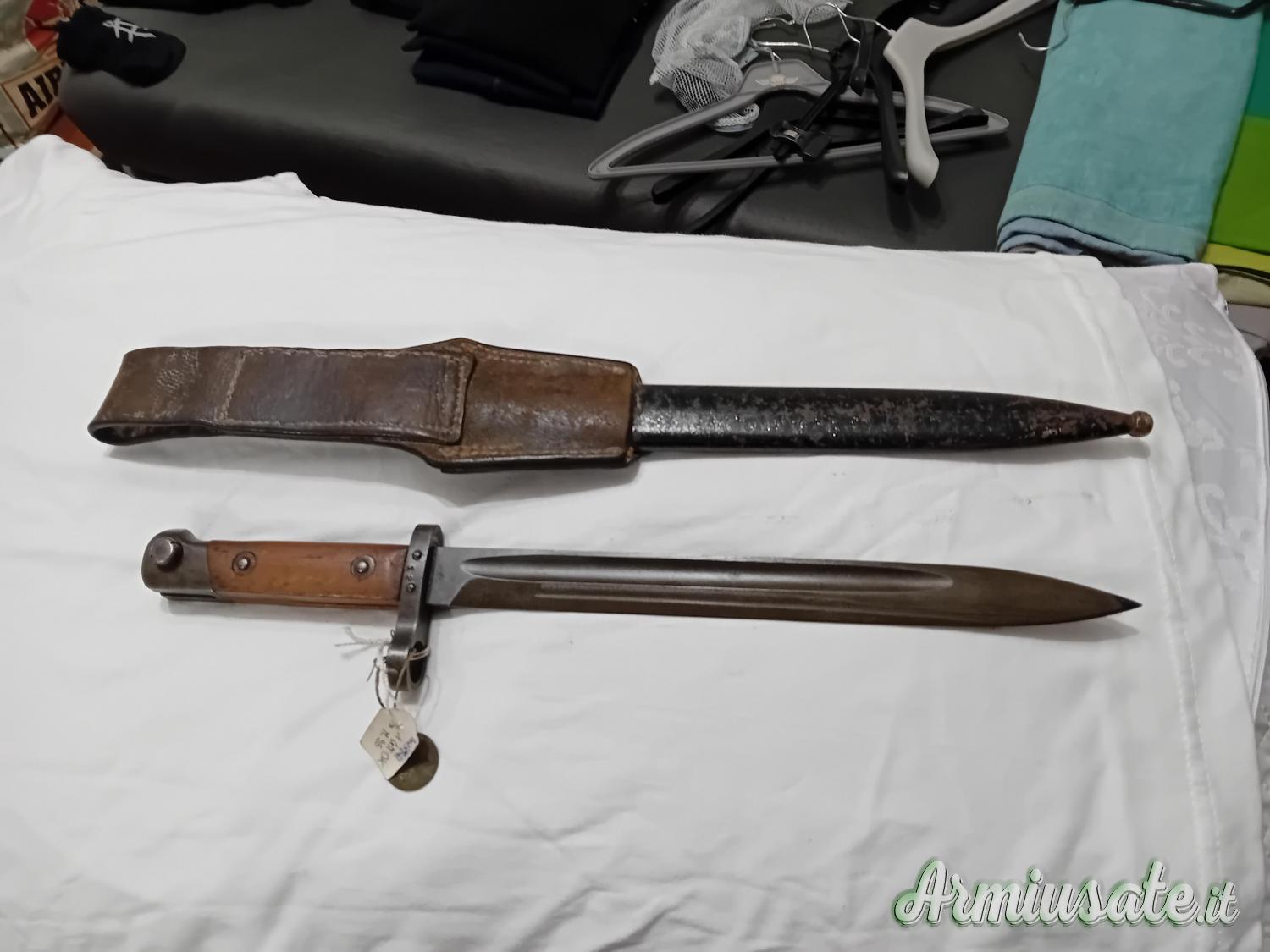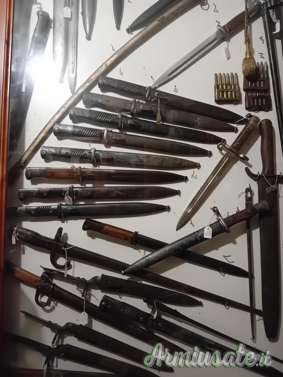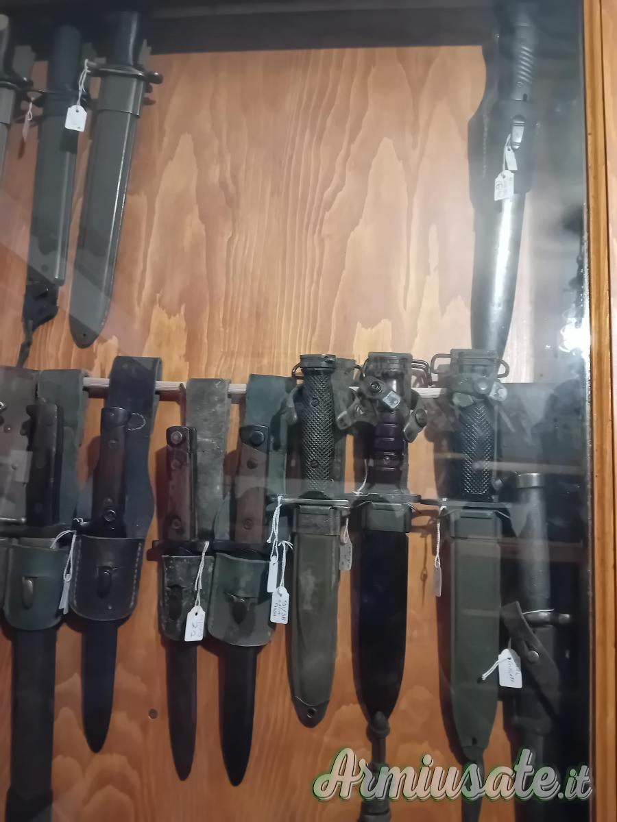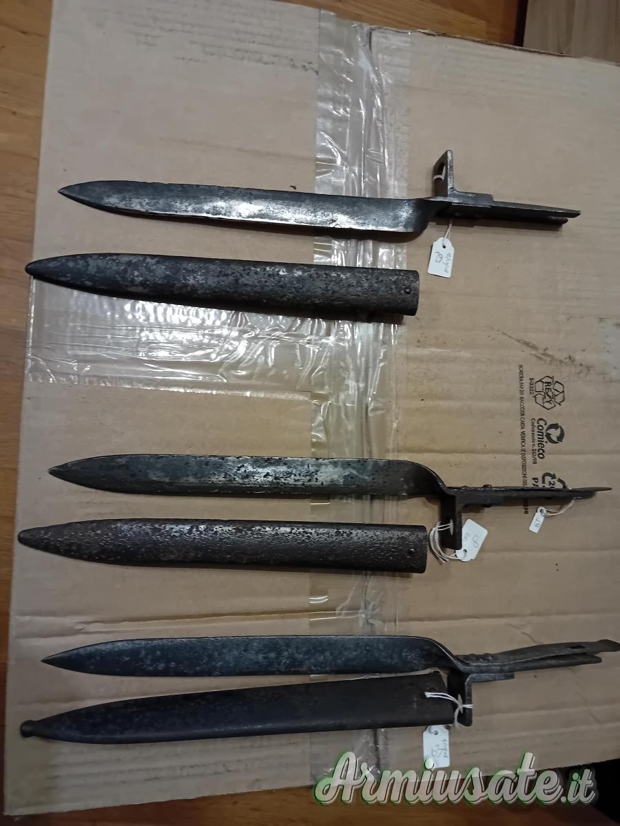 Ne ho diverse per Lee Enfield e modificate Terni per fucile mod. 91. Chiedo, prima della visione, esibizione della licenza utile alla detenzione. Sono ripetitivo: le baionette sono tutte denunciate e cedibili con atto da depositare negli uffici di polizia/carabinieri per l'inserimento in denuncia. A solo titolo d'esempio baionette per k98 da 80€ a 250€ a seconda del tipo, condizione e matricola: ne ho alcune in condizioni da museo. Prego astenersi da offerte oltraggiose, sono collezionista, conosco il valore di quello che possiedo e, per fortuna, non sono in fin di vita. Per la '91 TS posso valutare offerte serie, astenersi finti ignari del tipo di baionetta, o che fanno giri di discorsi per poi, dopo svariate trattative inconcludenti, offrire una cifra irrisoria: il valore della TS supera i mille euro, grazie alle specifiche, documentabili. Non sono preso dalla disperazione e quindi non ho nessuna fretta di vendere.
