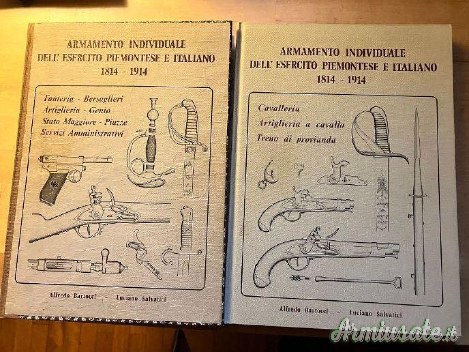 Bartocci Salvatici - Armamento individuale dell'esercito piemontese e italiano 1814 1914 - 2 volumi I e II. Opera indispensabile per il collezionista ed amatore di armi antiche ex ordinanza piemontesi ed italiane. Ottime condizioni con firma autografa di Bartocci sul volume II. Opera rara difficile da trovarsi.