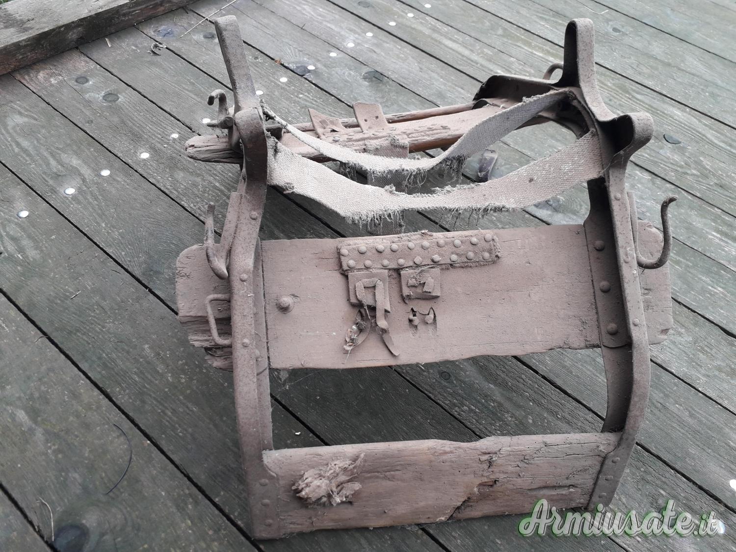 Vendo un basto da asino austriaco usato nel fronte bellunese nella 1 guerra mondiale. Da soffitta. Ferri a posto, legni usati ma presenti e resti dei vari cinghiaggi in cuoio e tela eventualmente da restaurare. Prezzo da stabilire. Tel Luca 3534152424