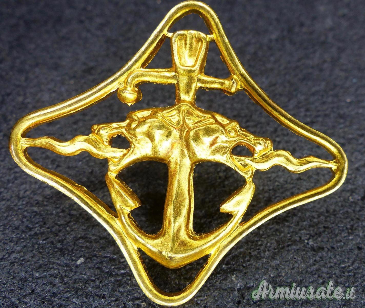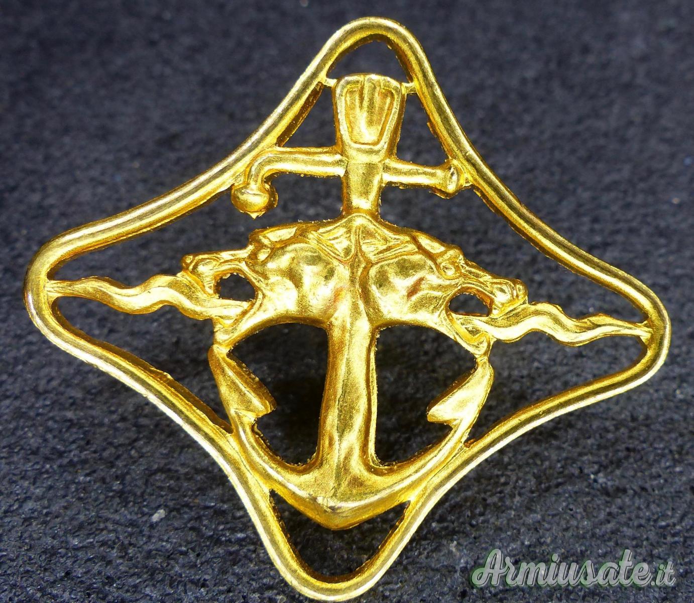 Distintivo ,classe oro ovvero 3° grado, per il personale con almeno 48 mesi di imbarco o 5000 ore di navigazione e almeno 8 azioni di guerra. Il distintivo fu instituito nel maggio del 1944 e coniato dalla ditta Jonson . Originale e di alta qualità. Mai indossato.