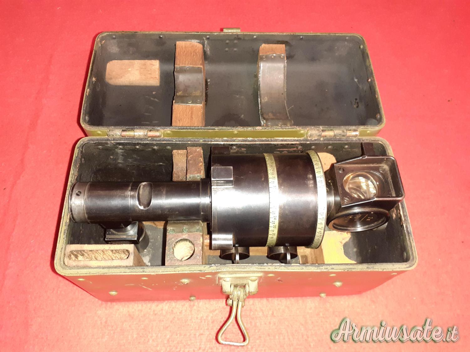 Obiettivo per dirigere il fuoco dell’obice italiano da 105/22 modello 14/61 con contenitore originale, tutto perfettamente funzionante lenti nitide con riferimenti del tiro perfetti.