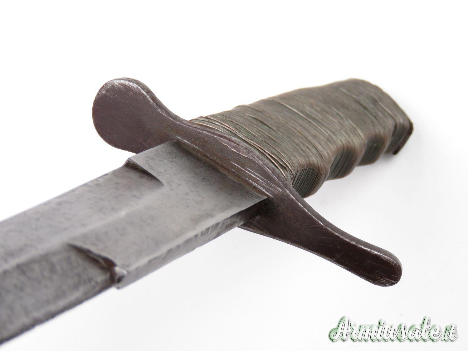 Vendo Mod. 35 Mvsn personalizzato in Africa con l'aggiunta intorno al manico di una ricopertura in filo di rame (oggi patinato). L'oggetto è privo di filo e di punta acuminata (come da foto). Spedisco con pacco ordinario al costo di 10 euro.