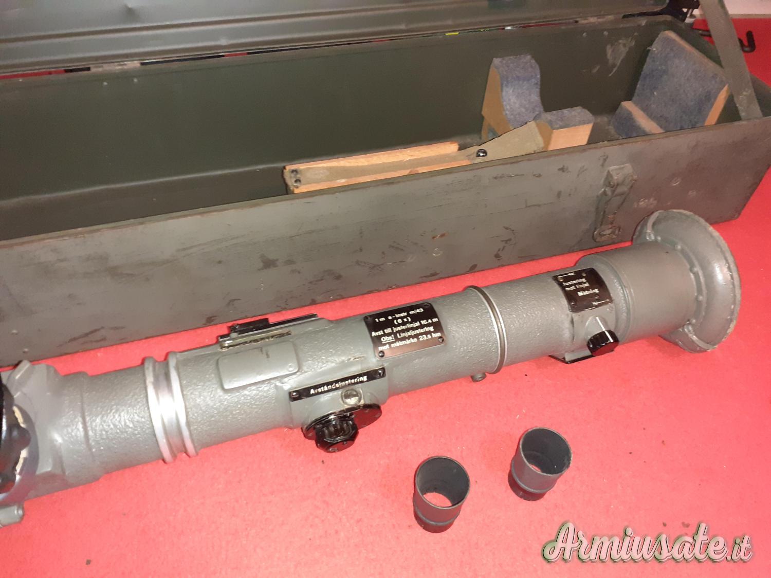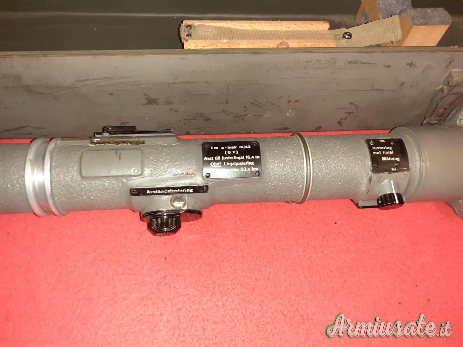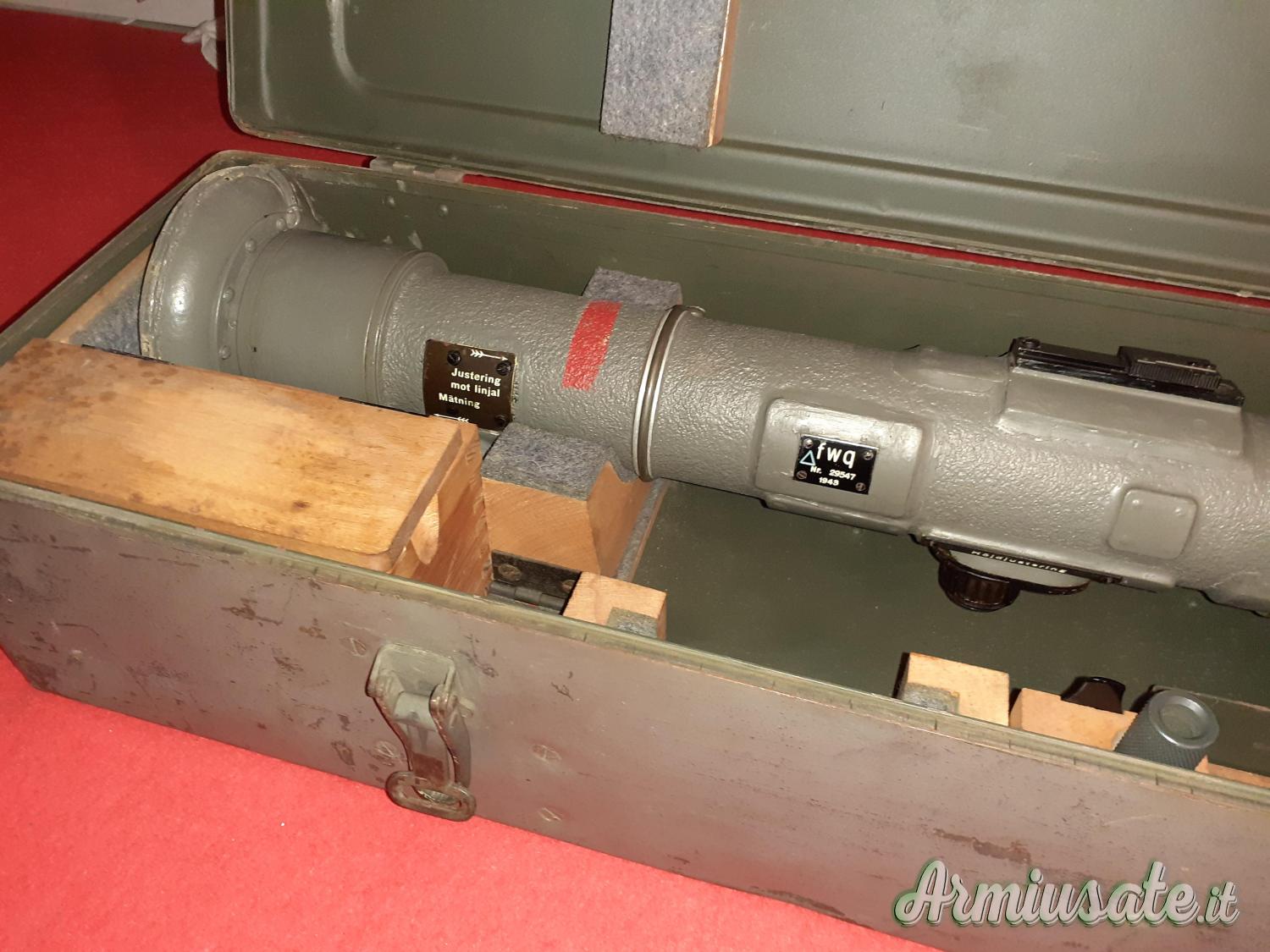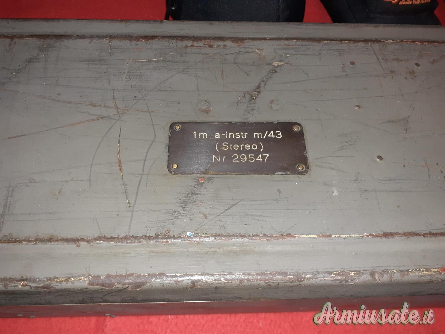 Telemetro tedesco marchiato FWQ 43 con triangolo blu testato per i climi freddi, realizzato durante la seconda Guerra Mondiale, si vede perfettamente attraverso il visore binoculare centrale, tutte le regolazioni perfettamente funzionanti, con cassa metallica e supporti originali. Usato per dirigere il fuoco della contraerea tedesca.