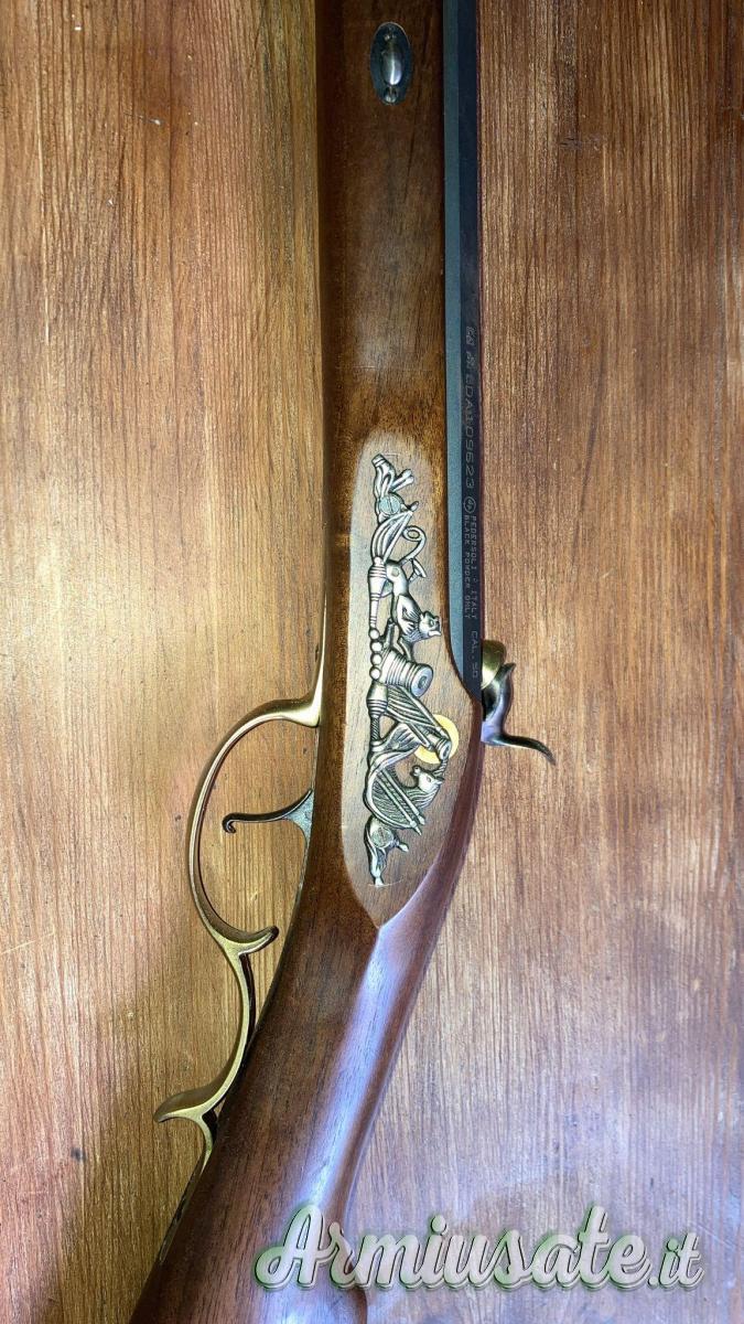 - Carabina Pedersoli ad avancarica con accensione a percussione modello Country Hunter cal. .50 in perfette condizioni. L'arma è stata impreziosita e personalizzata con una placchetta sul lato sinistro come si evince dalle foto.