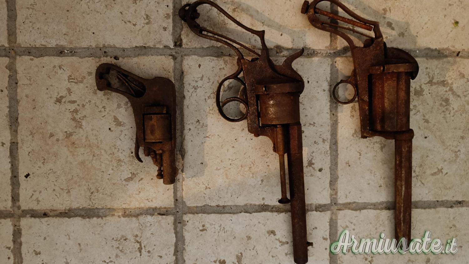Con l'impegno di chi le ritira di riportarle al loro antico splendore. Purtroppo sono state oggetto di un trattamento a bagno di acido balndo per ridurre punti di ruggine che, trascurato, ha peggiorato la situazione. Le foto mostrano stato attuale. Sono disponibili le reltive guancette, avorio e legno.