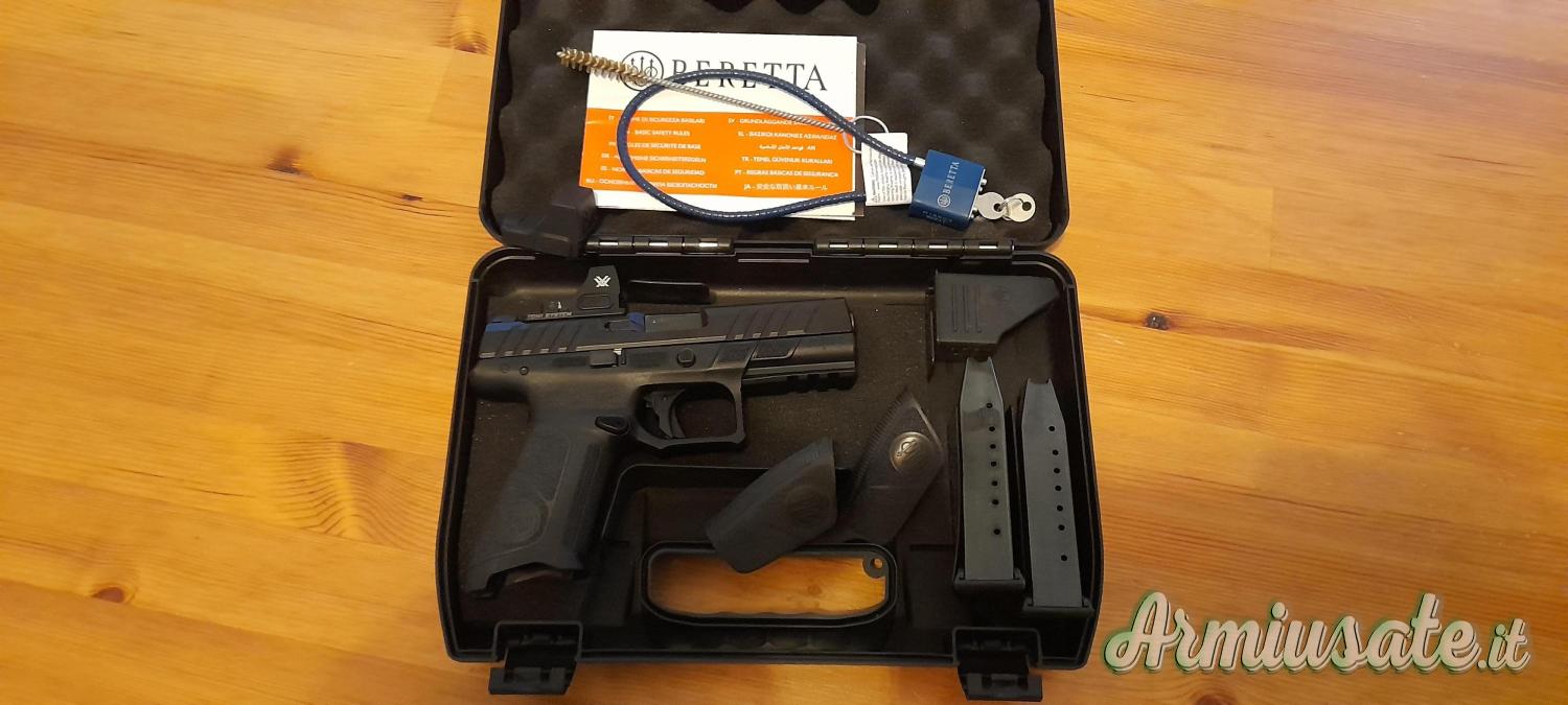 A malincuore Vendo per inutilizzo, beretta apx a1 cal. 9x19.. l'arma e' corredata da ottica red dot vortex defender ccw 6moa in acciaio indistruttibile,con annessa base per fissaggio tony system. Acquisizione bersaglio strepitosa. 2 caricatori, pad dorsali per diverse tipologie di grandezza mani, valigetta con suoi accessori tra cui il carichino. Fusto in polimeri.trattamento acquashield. Arma immediata e divertente sopratutto per chi inizia l'attivita' di tiro dinamico e tattico.L'arma e' stata usata 2 volte e poi riposta in armadio. Catalogazione arma comune. Prezzo 900 tutto compreso non trattabili visto che e' praticamente nuova. Contattare alberto whatsapp 3385949883