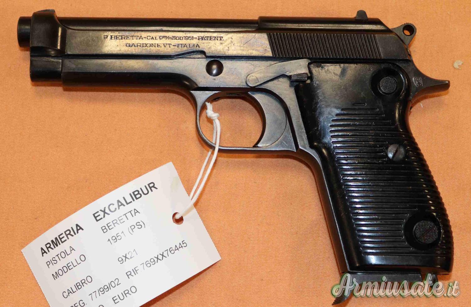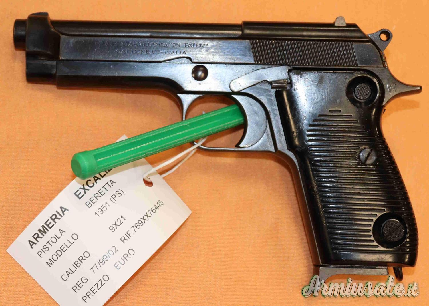 (77/99/02) Pistola Beretta mod.1951 Polizia di Stato in calibro 9x21 in buone condizioni . Eventuali aloni o macchie che potete vedere nelle foto sono residui olio e grasso di protezione o riflessi del flash.