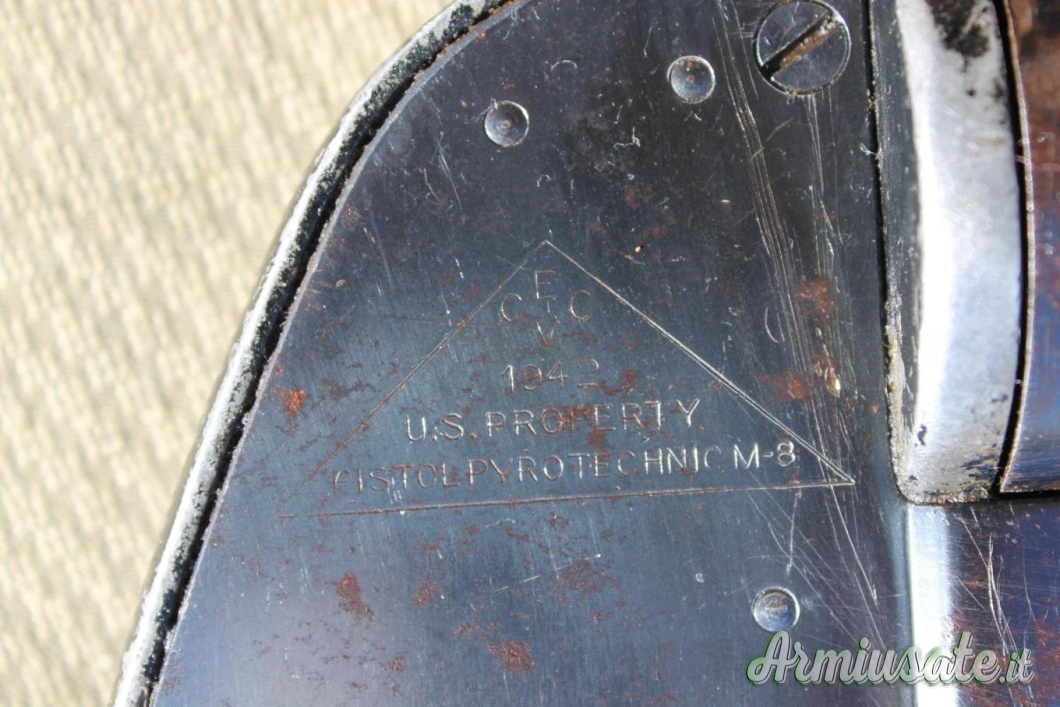 SPEDIZIONE INCLUSA NEL PREZZO DI ACQUISTO. Per cessata collezione cedo questa rara pistola lanciarazzi M.8 dell' US AIR FORCE in cal. 1,5 pollici (40 mm). E' marchiata "Property USA". Periodo bellico WW2 in dotazione alla Marina ed Aviazione Americana. Faceva parte della dotazione standard di segnalazione e soccorso a bordo degli aerei militari. E' in ottime condizioni estetiche e meccaniche nella bascula e nello scatto. Su internet viene venduta DISATTIVATA ad un prezzo molto al di sopra di quello da me richiesto, pertanto è una vera occasione. Possibilità di spedizione con armeria. Vendo anche varie ed altre armi, inserite su singoli annunci consultabili attraverso l' opzione "Mostra tutte le inserzioni dell'utente" che trovi in basso a destra su questo annuncio. SE VEDI QUESTO ANNUNCIO VUOL DIRE CHE L'ARMA E' ANCORA DISPONIBILE