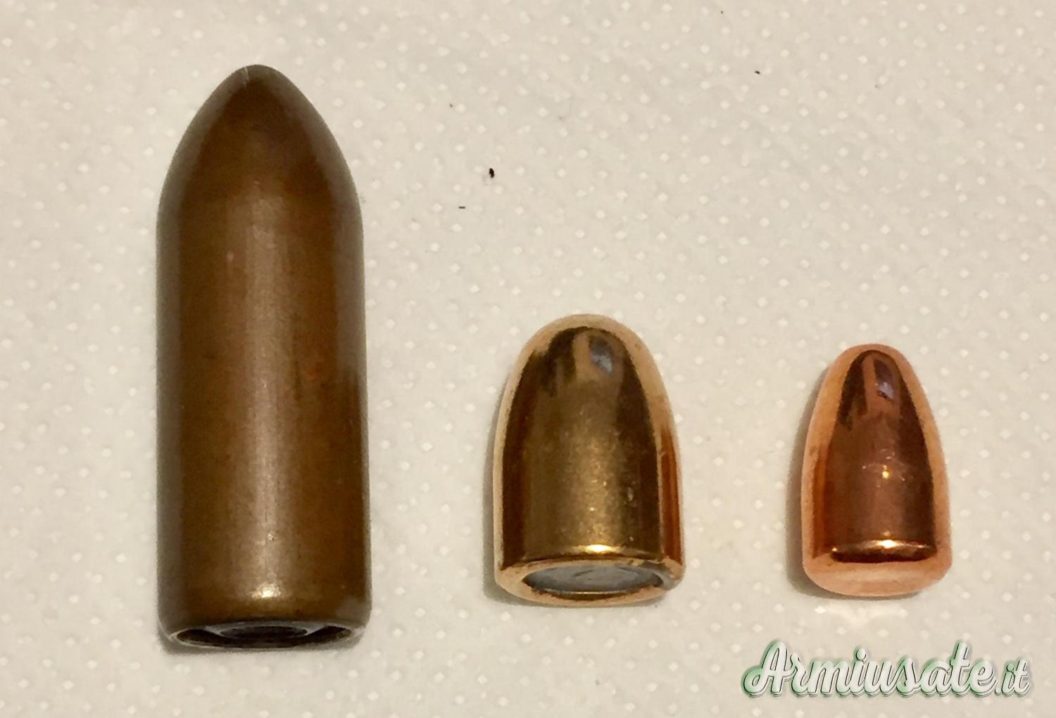 (foto 10, pallottole a confronto: 12 gyrojet, 45acp, 9 imi)