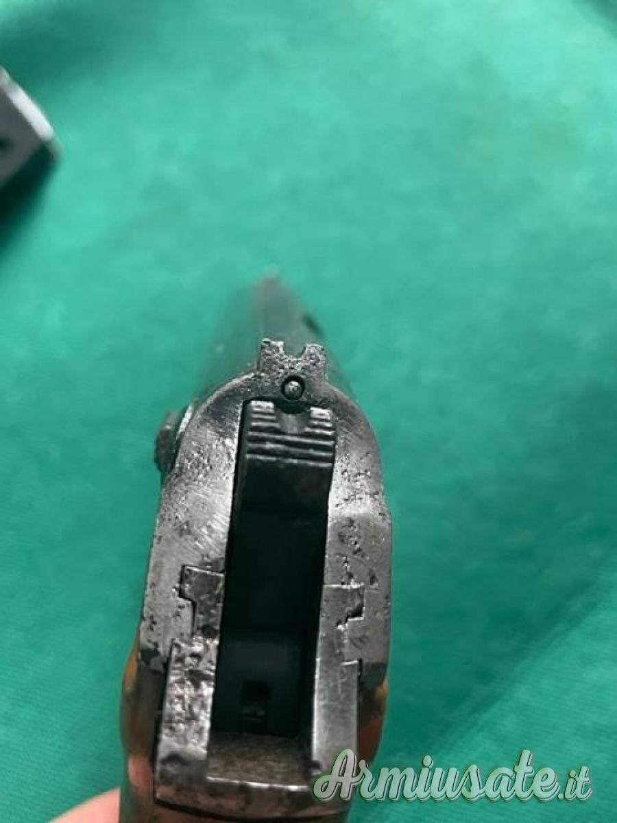 Presenta camolature sulla parte sinistra del carrello e del fusto, forse per cattiva conservazione in fondina. La canna è buona, le gunacette sono integre e non vi sono crepature. Fondina originale senza marchi ma ritrovata assieme alla pistola.