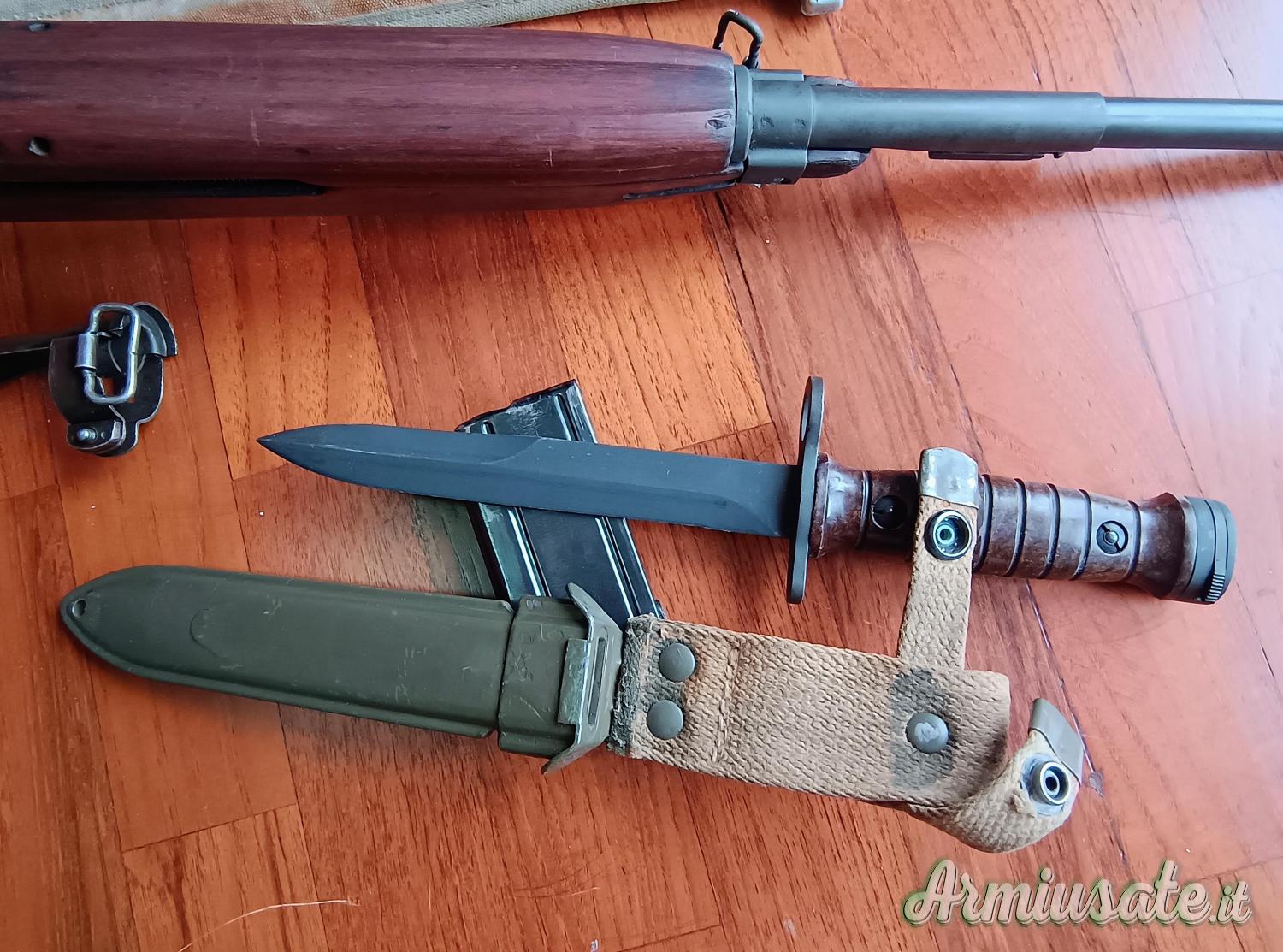 Per conto di un'amico bella carabina US 30M1 completa di baionetta, caricatore, ferma canna-slitta baionetta di ricambio, manuale istruzioni, set pulizia, 15 proiettili. Pezzo raro così accessoriato, legni senza crepe. Cede per limite di età a veri appassionati a prezzo occasione