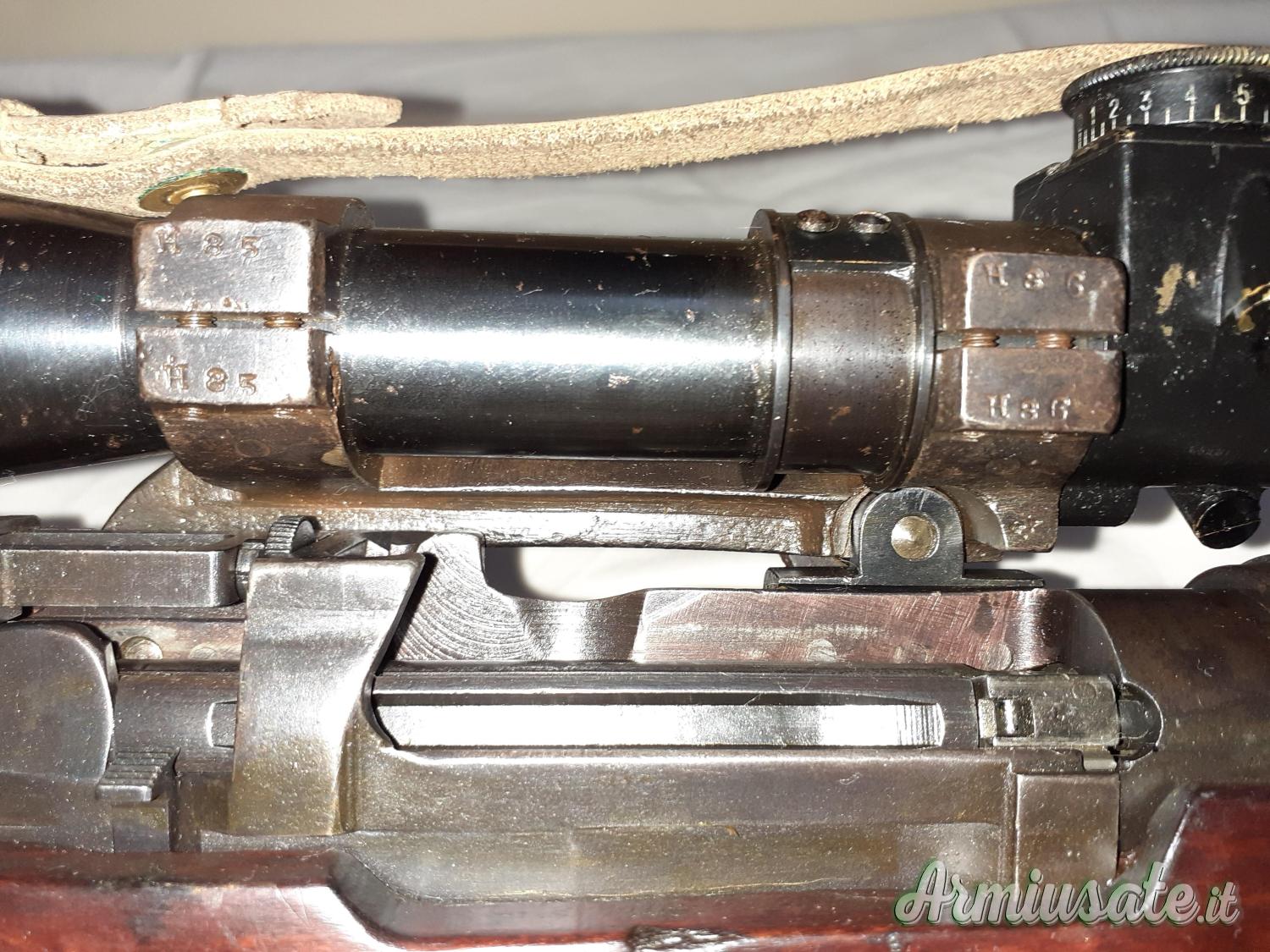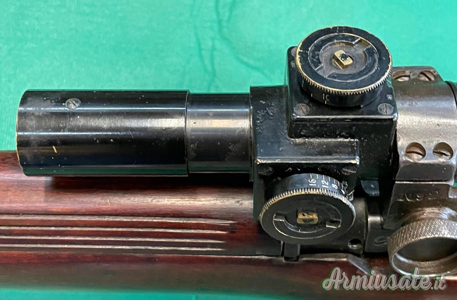 Arma in ottime condizioni di ferri e legni, canna lucida con ottima rigatura. Ottica nitida e ben tenuta. Completa della custodia metallica, chiave di regolazione e copri lenti in pelle. Sui ferri è presente il punzone di accettazione britannico (Broad arrow) ed altri punzoni di ispezione. Calcio marcato. Monomatricola e cassa di legno per il trasporto originale, cinghia M1907 originale.