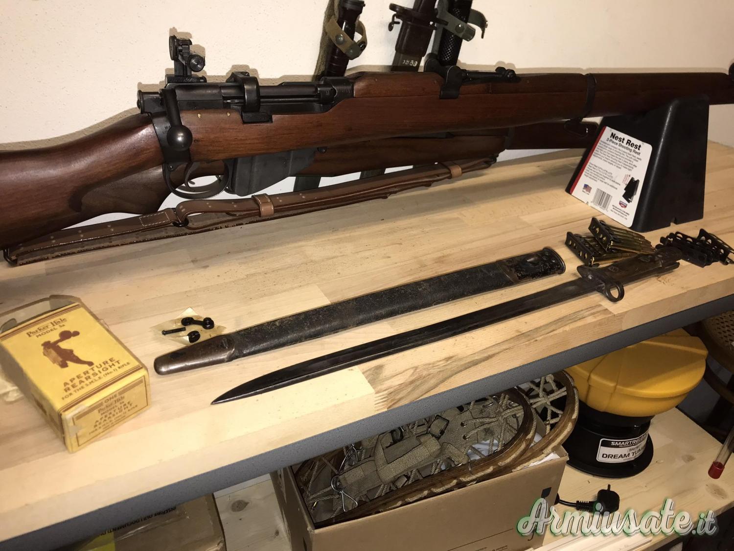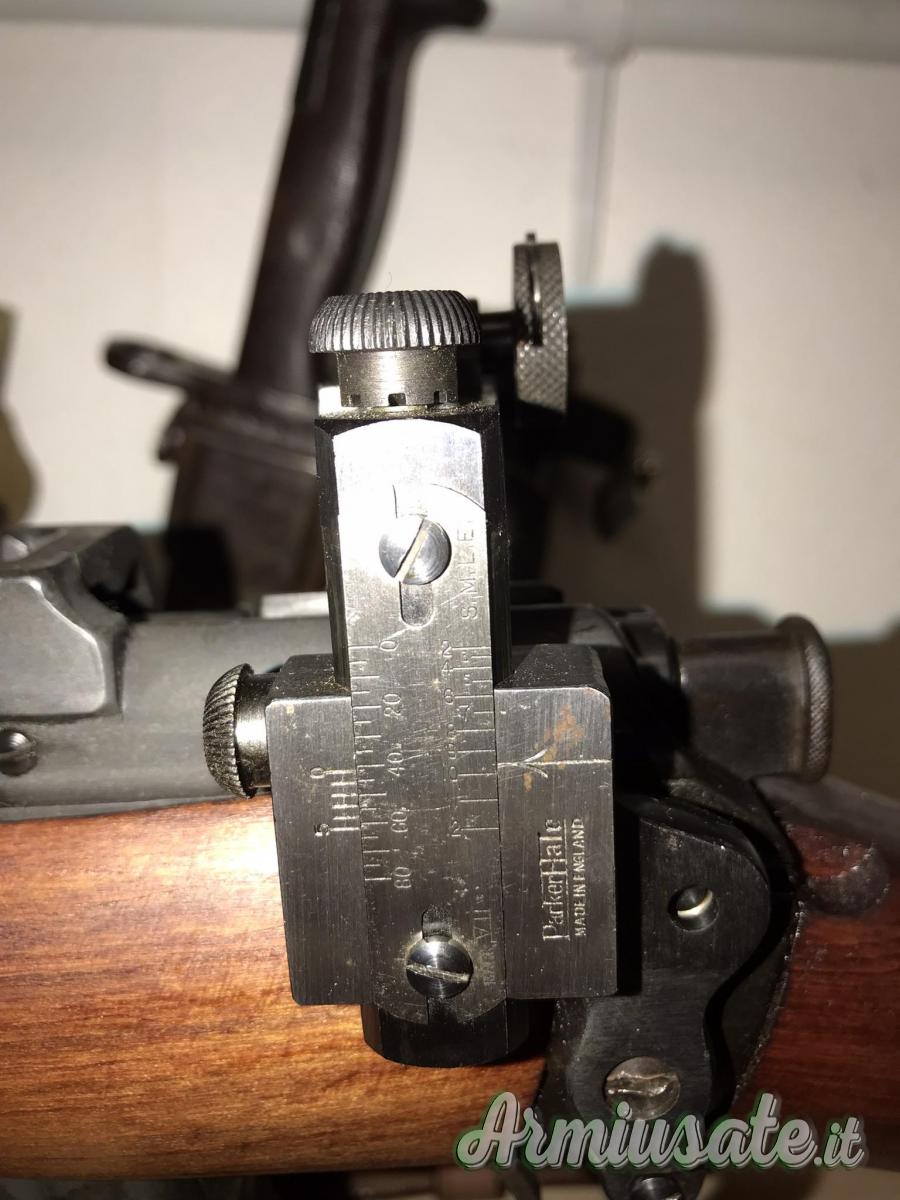 L'arma monta una diottra Parker Hale modello 5a Mark VII di inizio anni 60 costruita appositamente per questa carabina.