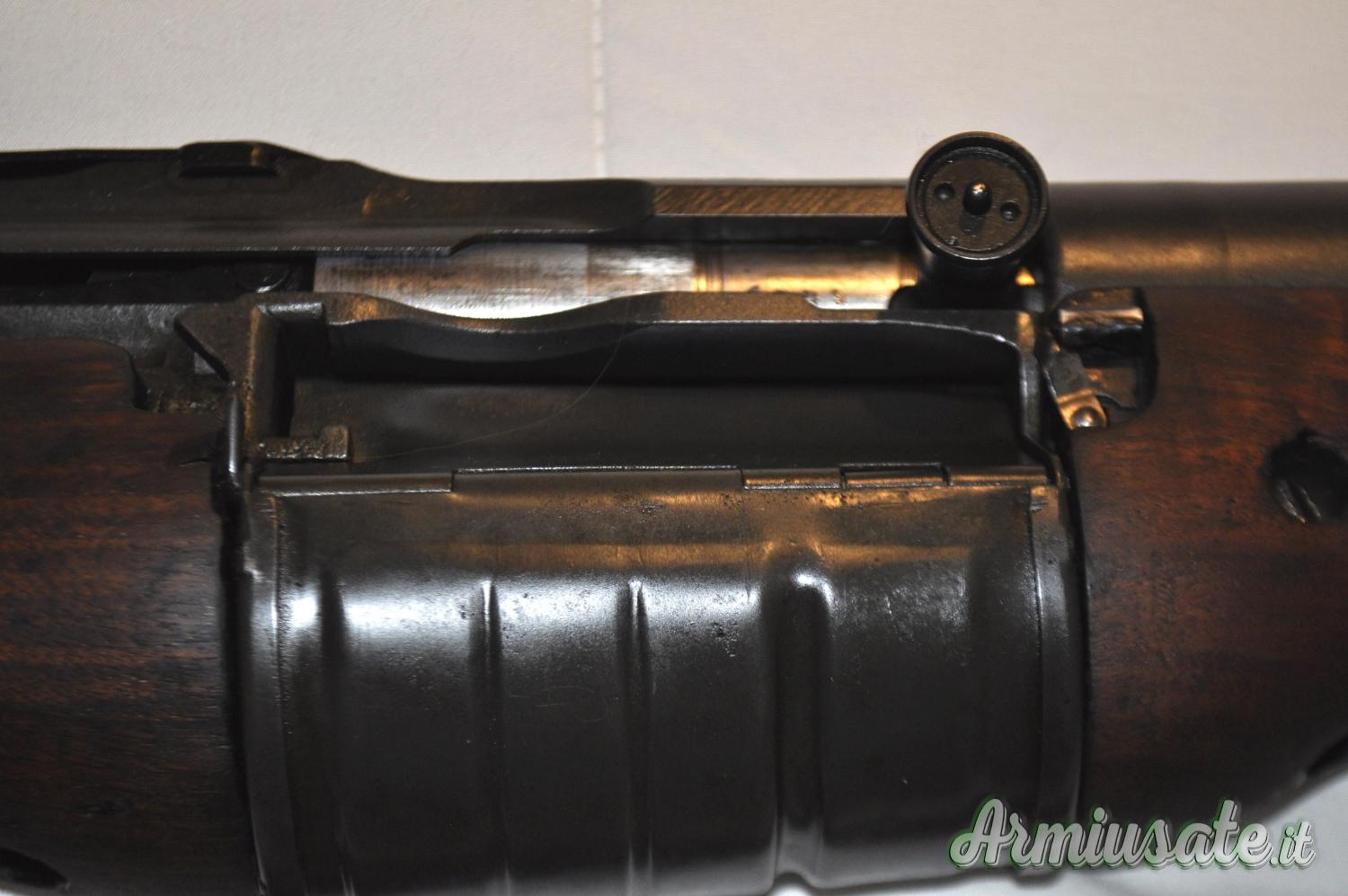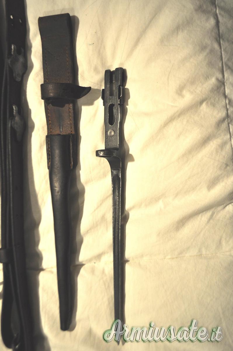Condizioni perfette, cinghia M1907 originale, baionetta con fodero (quasi introvabile anche in USA). Caricatore rotante da 10 colpi, calcio realizzato in due pezzi separati al centro dal caricatore.