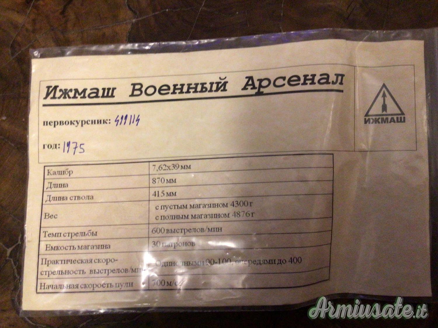 Si richiedono 1300 euro data la rarità dell’arma. Non è il solito kalashnikov bulgaro, polacco, rumeno o cinese, è un AK sovietico oggi non più importato da noi (a causa delle restrizioni sulle importazioni dopo lo scoppio della guerra in Ucraina). REGISTRATO PER USO SPORTIVO.