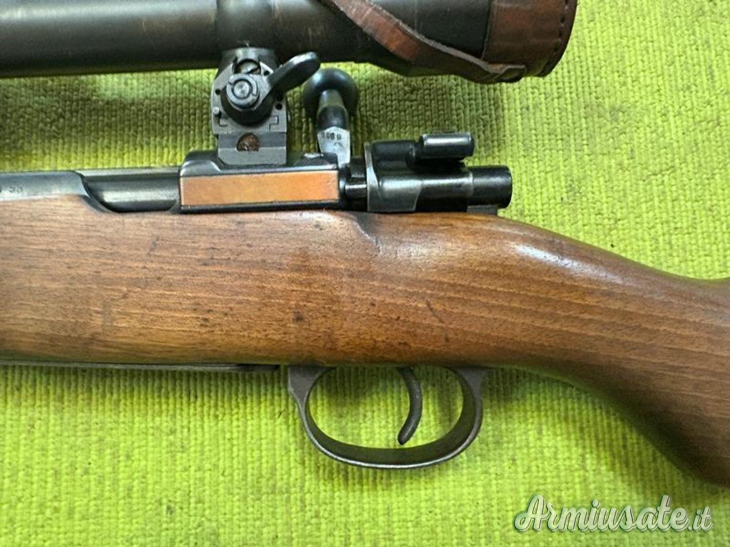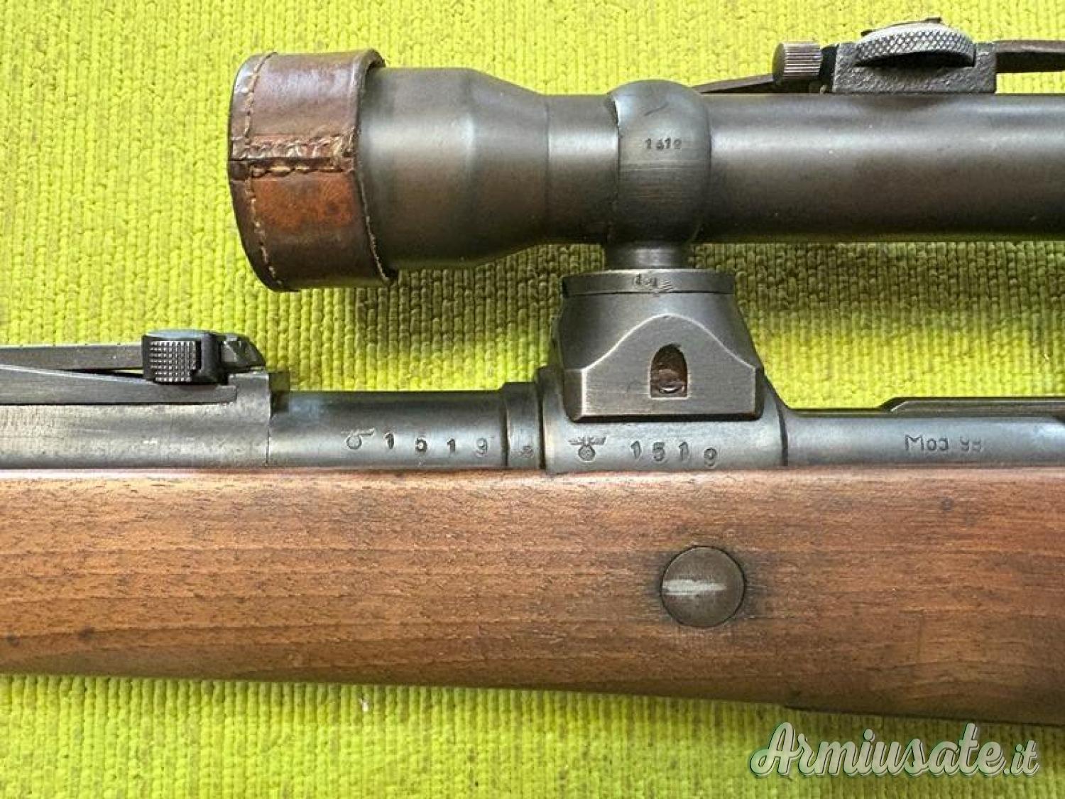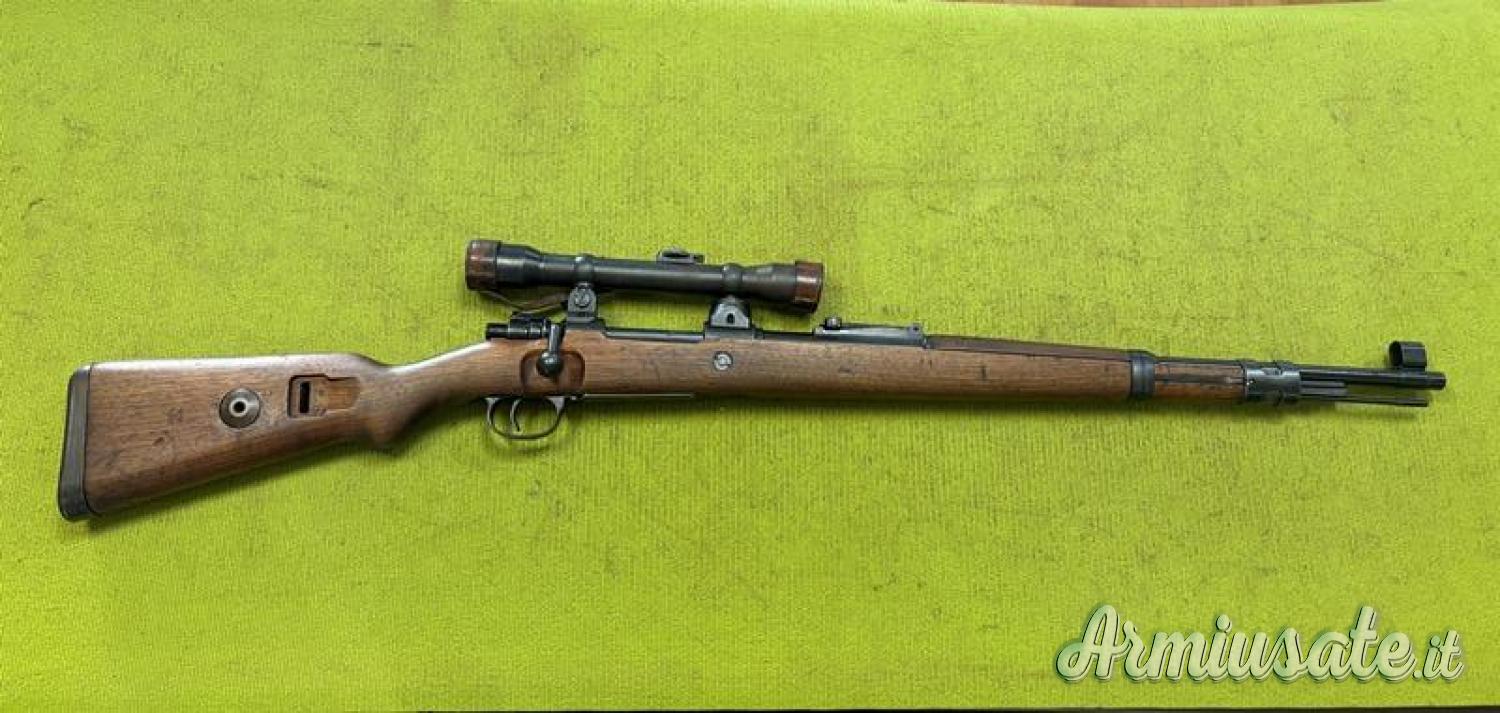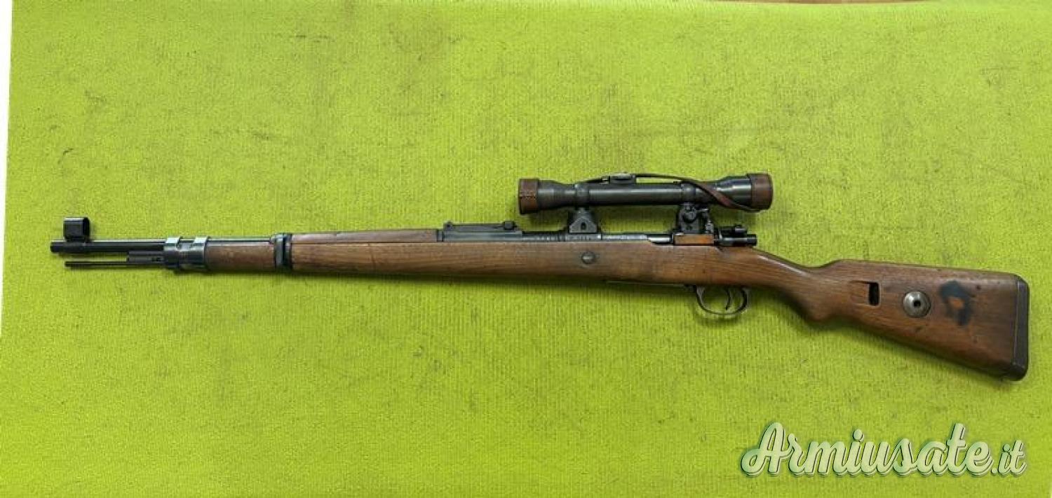 Kar98k Sniper prodotto dalla Mauser agli inizi del 1944. Canna bella forata m 7,95, bruniura e legni in ottime condizioni. Punzoni WaA135 e WaA63. Ottica Kahles Wien H/4x60 con tericolo a T, lenti nitide e reticolo ben visibile, corona di regolazione dell'alzo in ettometri. Montaggio ottica con la stessa matricola dell'arma modello torrette basse, pur essendo un byf del 1944 (vedi libro di Bruce Karem e Michael Steves "Karabiner K98", volume IIa, pagina 224). Calcio con punzone WaA135 (Mauser).