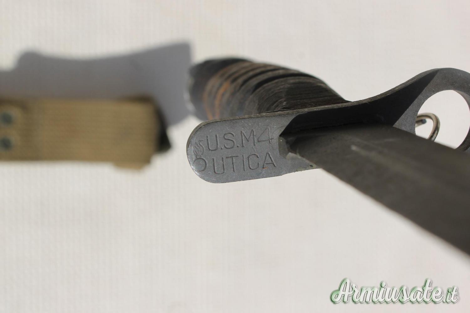 Per cessata collezione vendo questa baionetta per carabina Winchester M1 mod. U.S. M4 con punzone UTICA "Flaming bomb" con impugnatura a dischi di cuoio pressato che caratterizza la prima versione, finitura fosfatata.