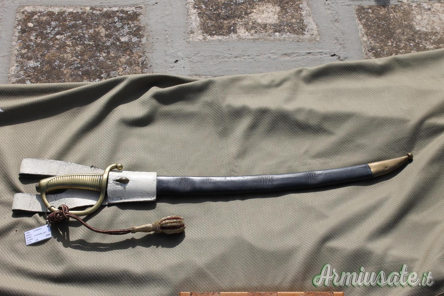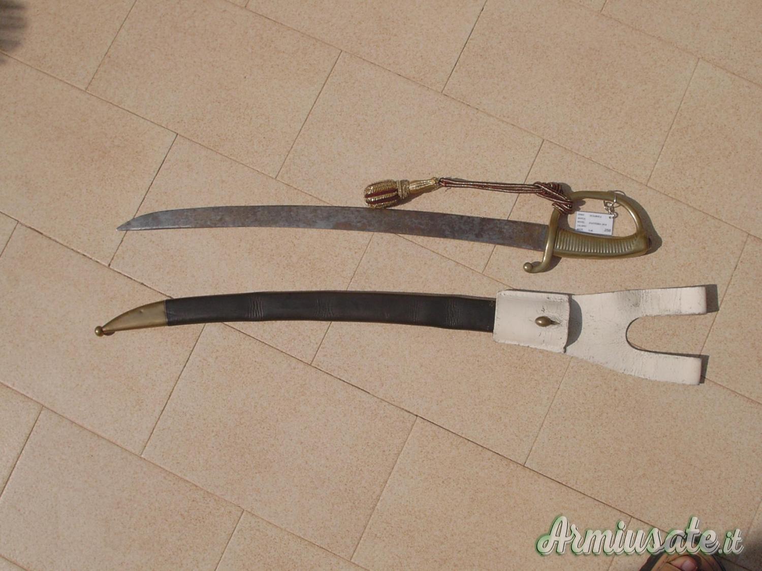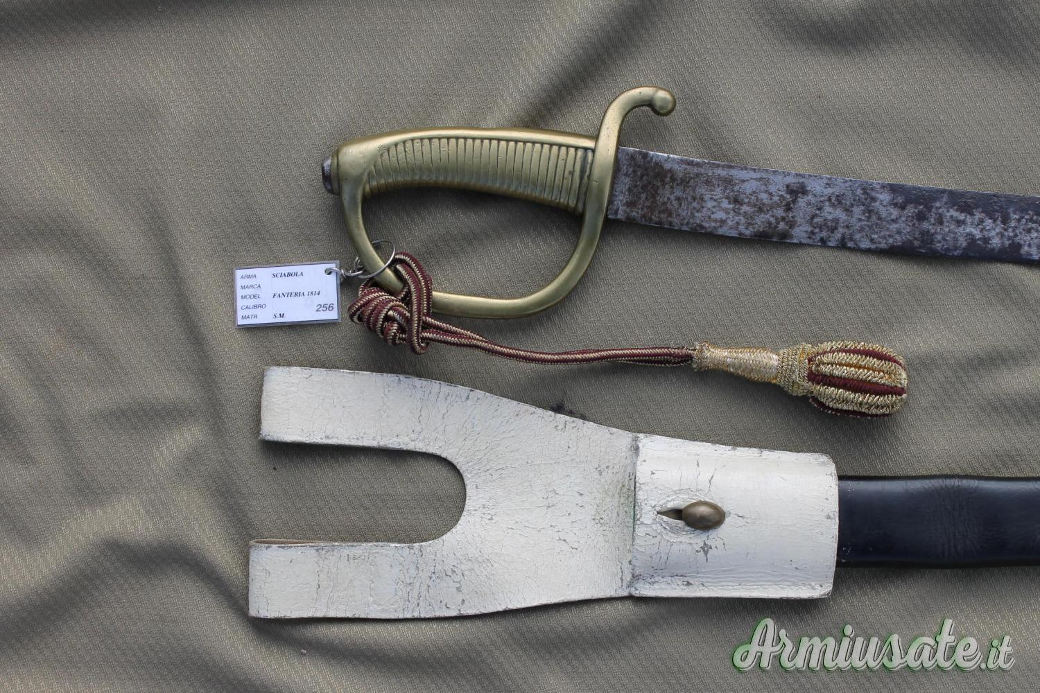 Per cessata collezione vendo questa veterana sciabola da Fanteria, utilizzata anche dai Carabinieri a piedi, mod. 1814. Oltre 200 anni di storia portati molto bene. Completa anche del suo fodero e dell'attacco al cinturone. Ha solo bisogno di una lucidatura alla sua lama. Di non facile reperibilità in queste condizioni pertanto un pezzo raro che potrà abbellire la propria collezione. Possibilità di spedizione con armeria. Vendo anche varie ed altre armi, inserite su singoli annunci consultabili attraverso l’opzione “Mostra tutte le inserzioni dell’utente” che trovi in basso a destra su questo annuncio. SE VEDI QUESTO ANNUNCIO VUOL DIRE CHE L'ARMA E' ANCORA DISPONIBILE PER LA VENDITA.
