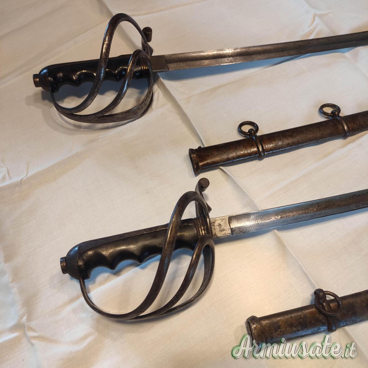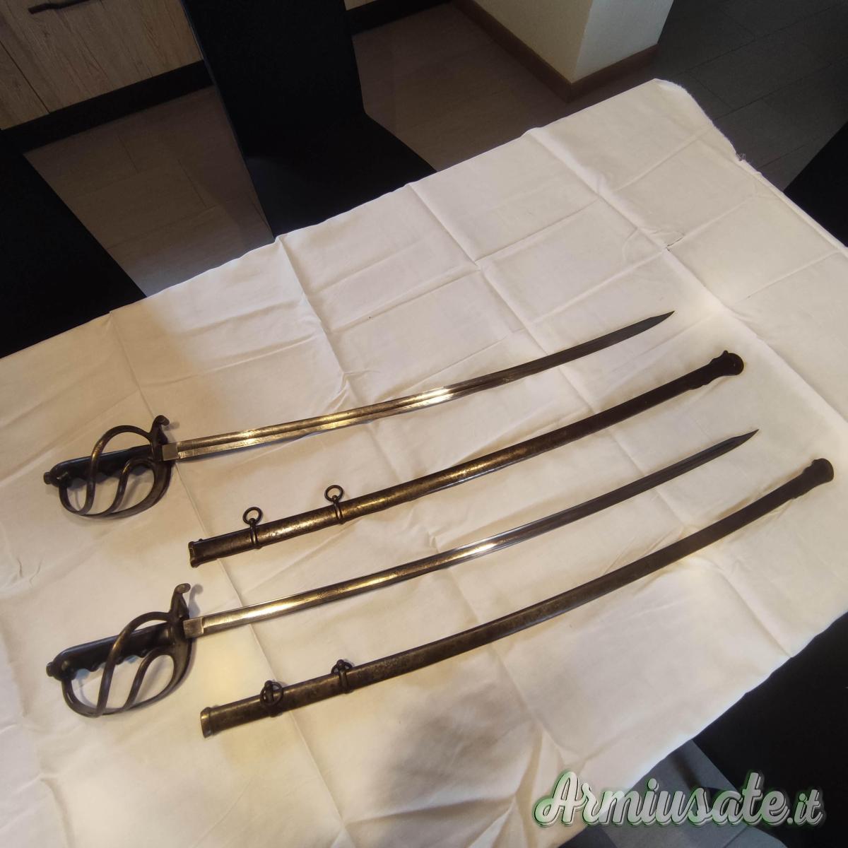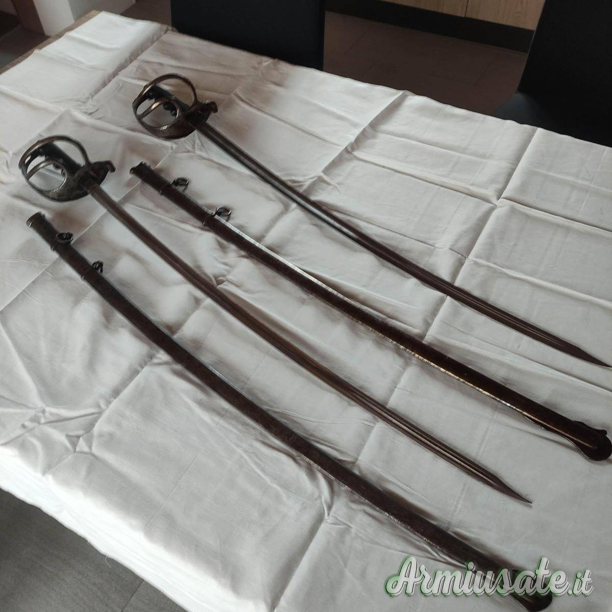 Insieme cedo due Sciabole del XIX secolo modello 88-Italia Regno complete di fodero acciaio Solingen e una Daga del XIX secolo dell' artiglieria Francese.