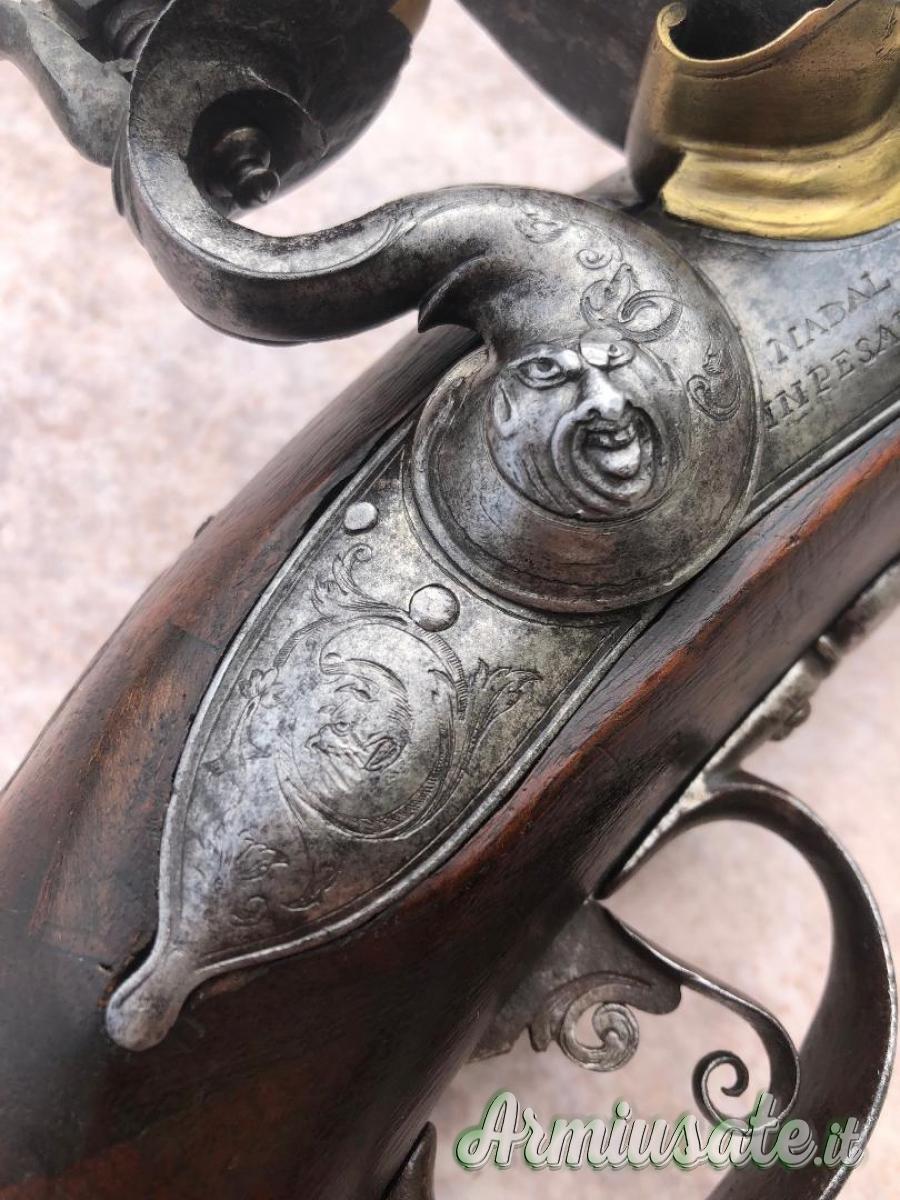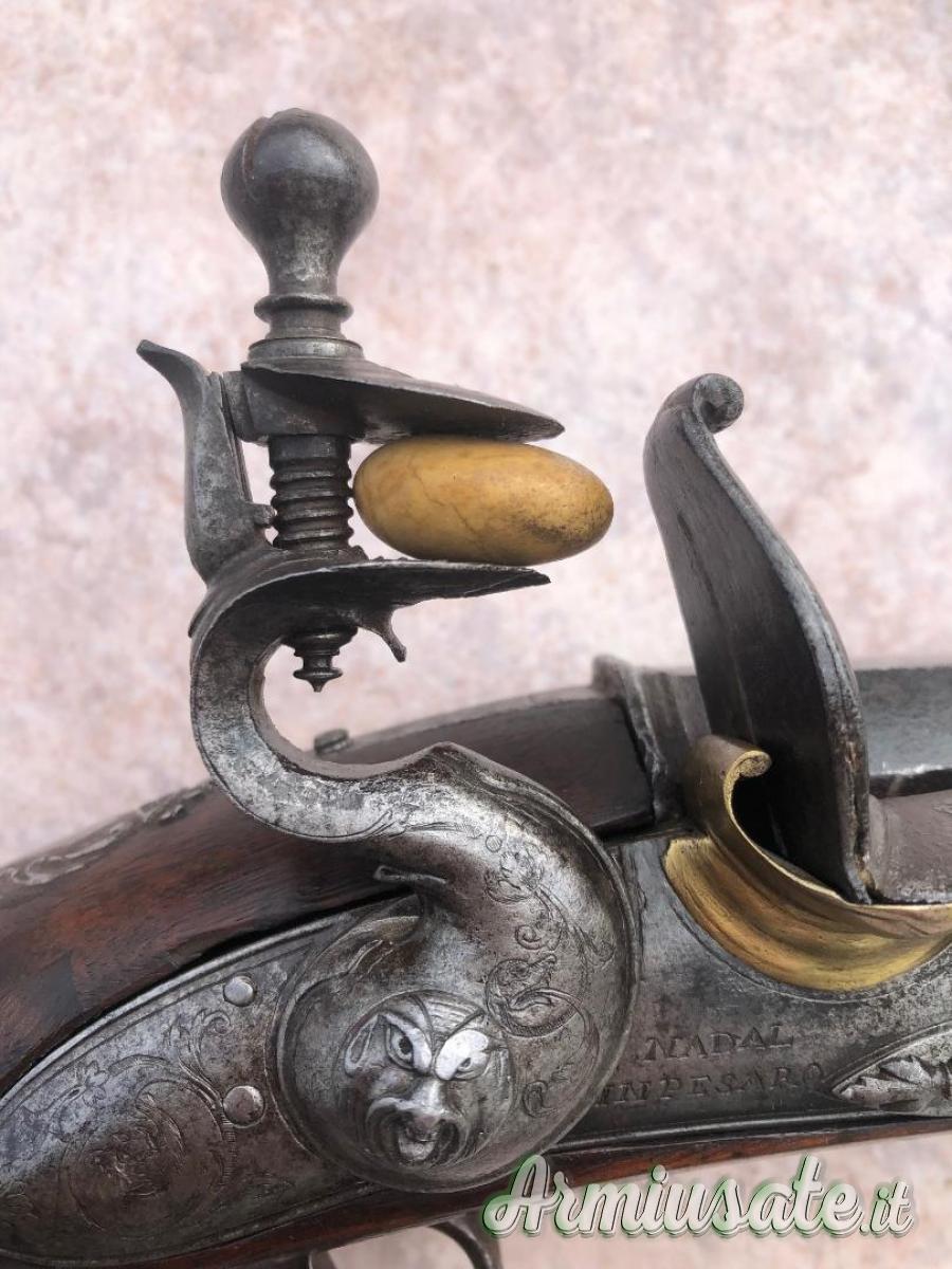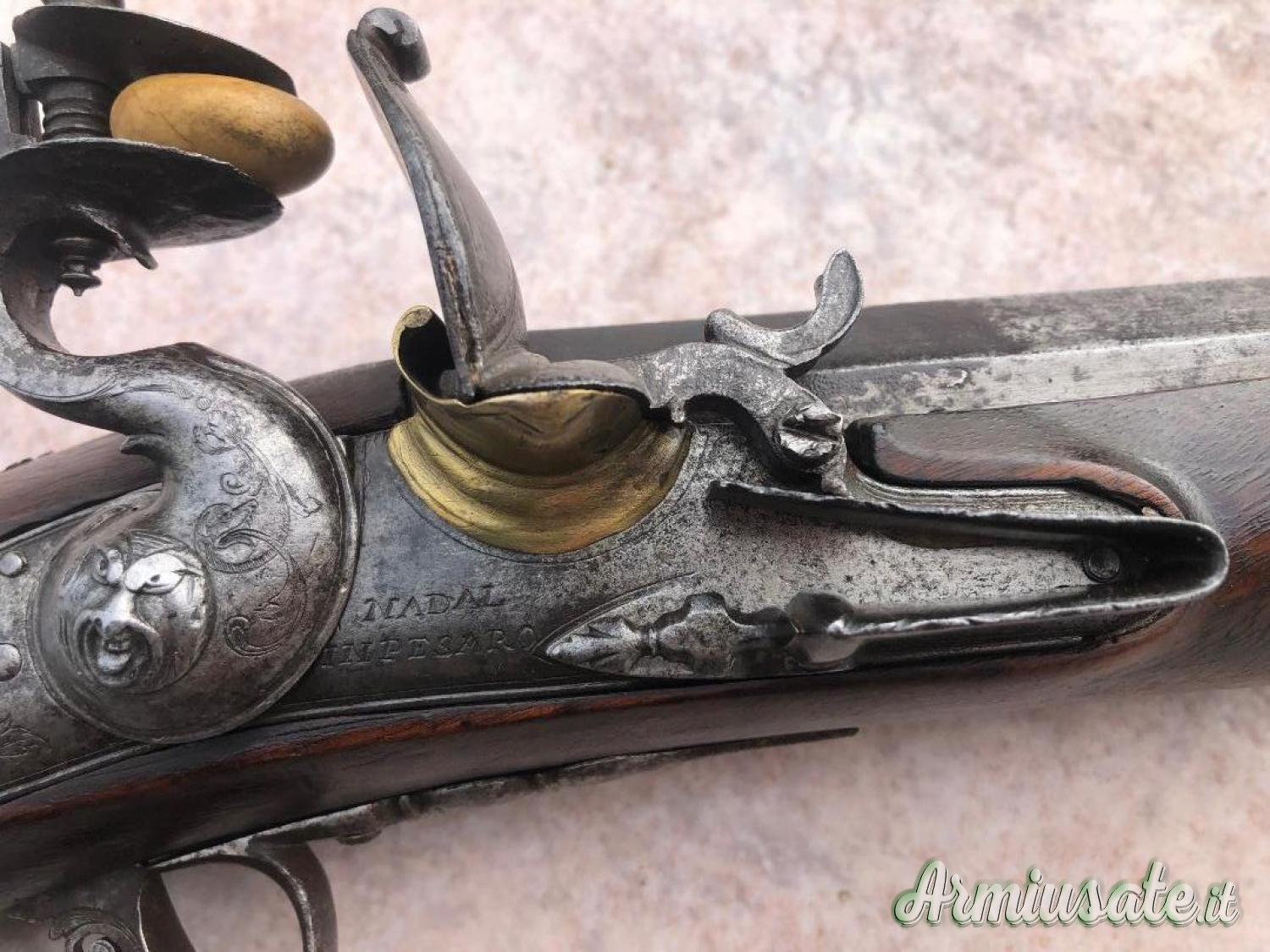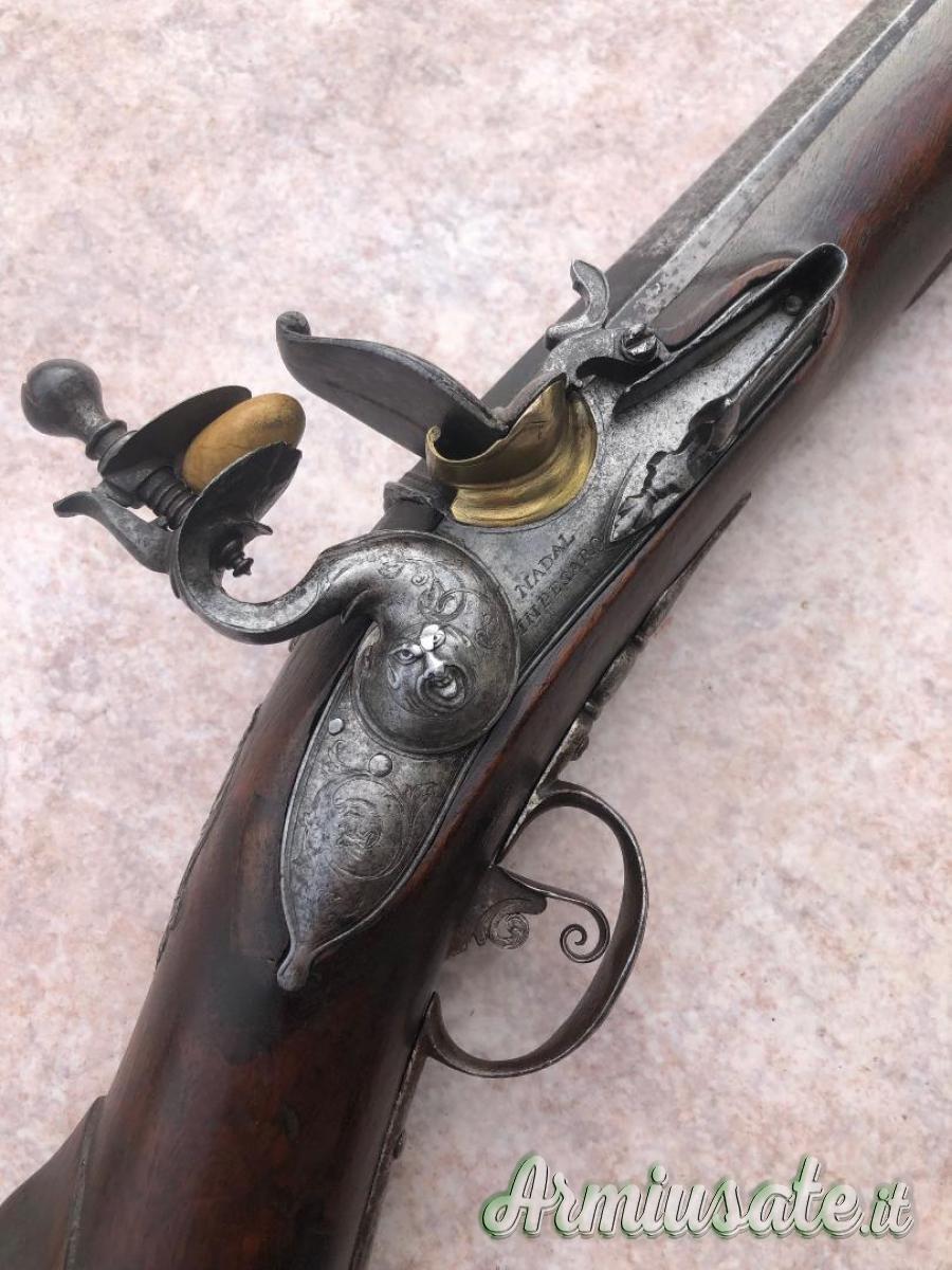 Repliche / Avancarica - Fucile avancarica pietra focaia firmata Nadal In Pesaro periodo XVIII secolo circa acciarino inciso
