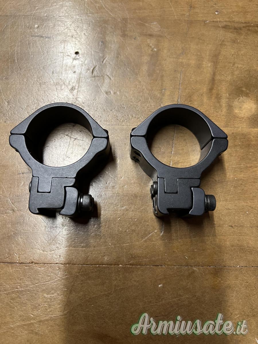 Vendo due anelli per supporto ottica, usati una sola volta. Diametro 34, larghezza attacco per slitta da 11mm (tipo tikka t1 cal. 22)