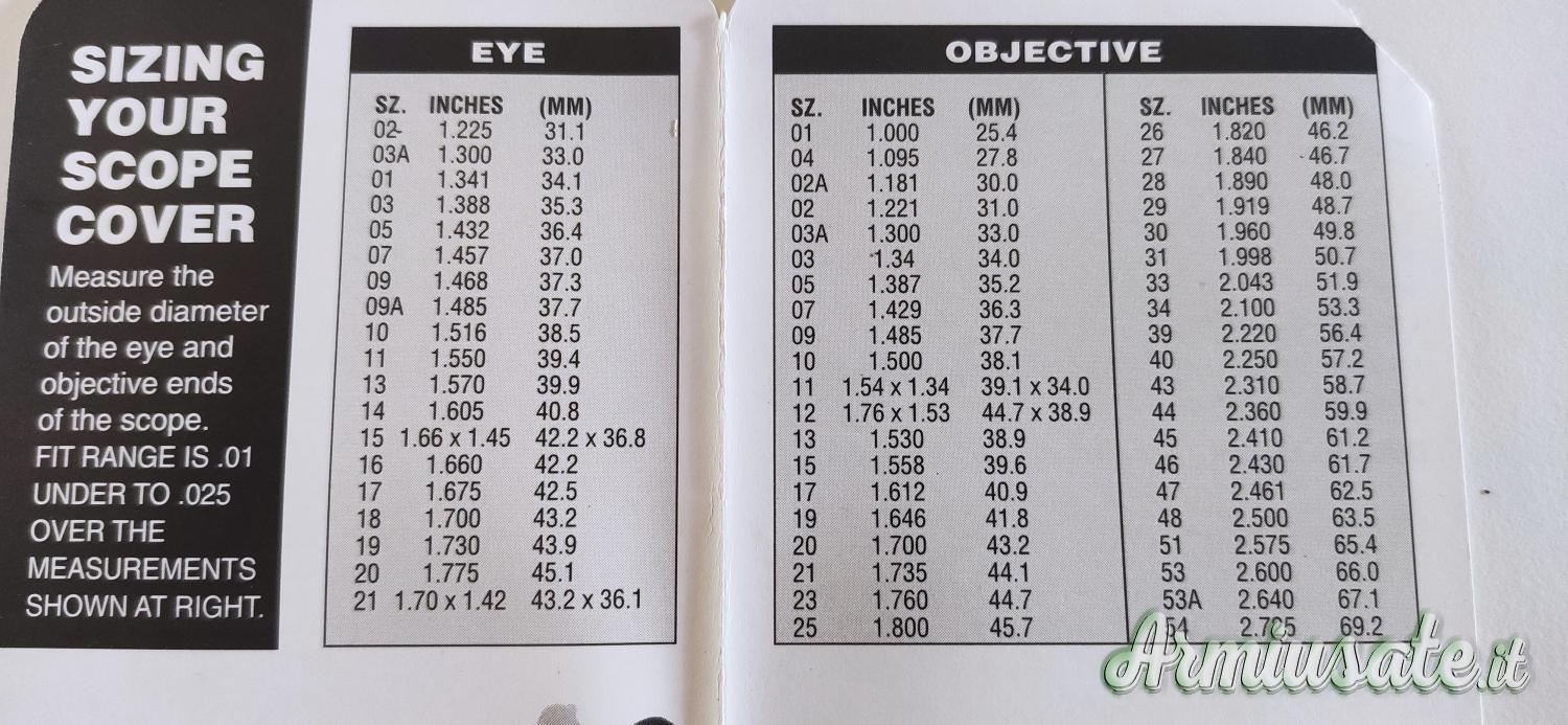 Indicare il diametro della campana dell'obbiettivo e dell'oculare nel foglio in foto la tabella di conversione.