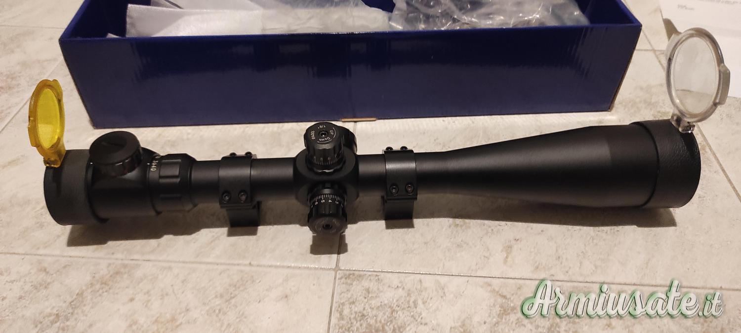 Viene venduta completa di scatola e di tutti i suoi accessori (visibili nelle foto) + coppia di anelli già montati sull'ottica per slitta da 20 mm.