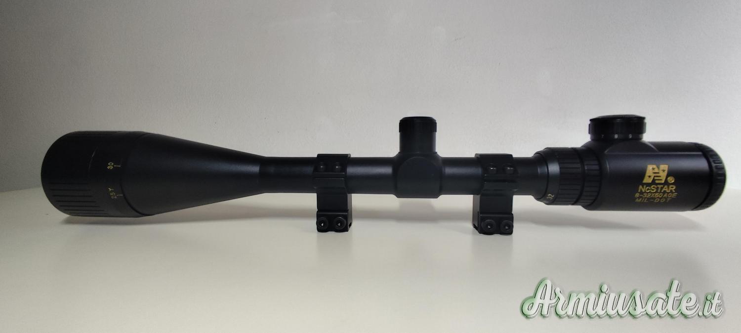 Vendo cannocchiale NcSTAR 8-32X50 AOE con reticolo Mil-Dot illuminato con anelli porta ottica gia montati.