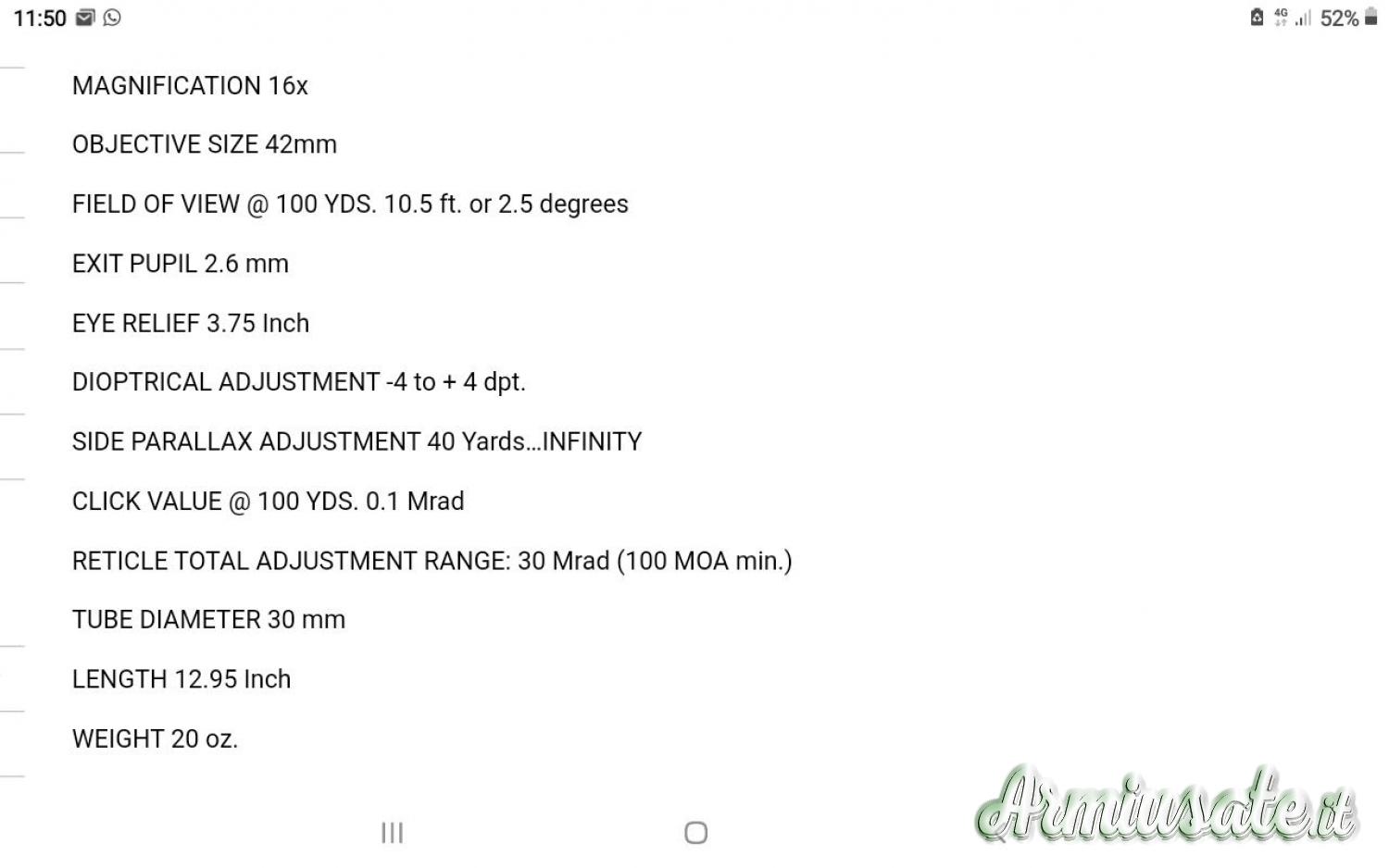 | Ingrandimento | 16 |