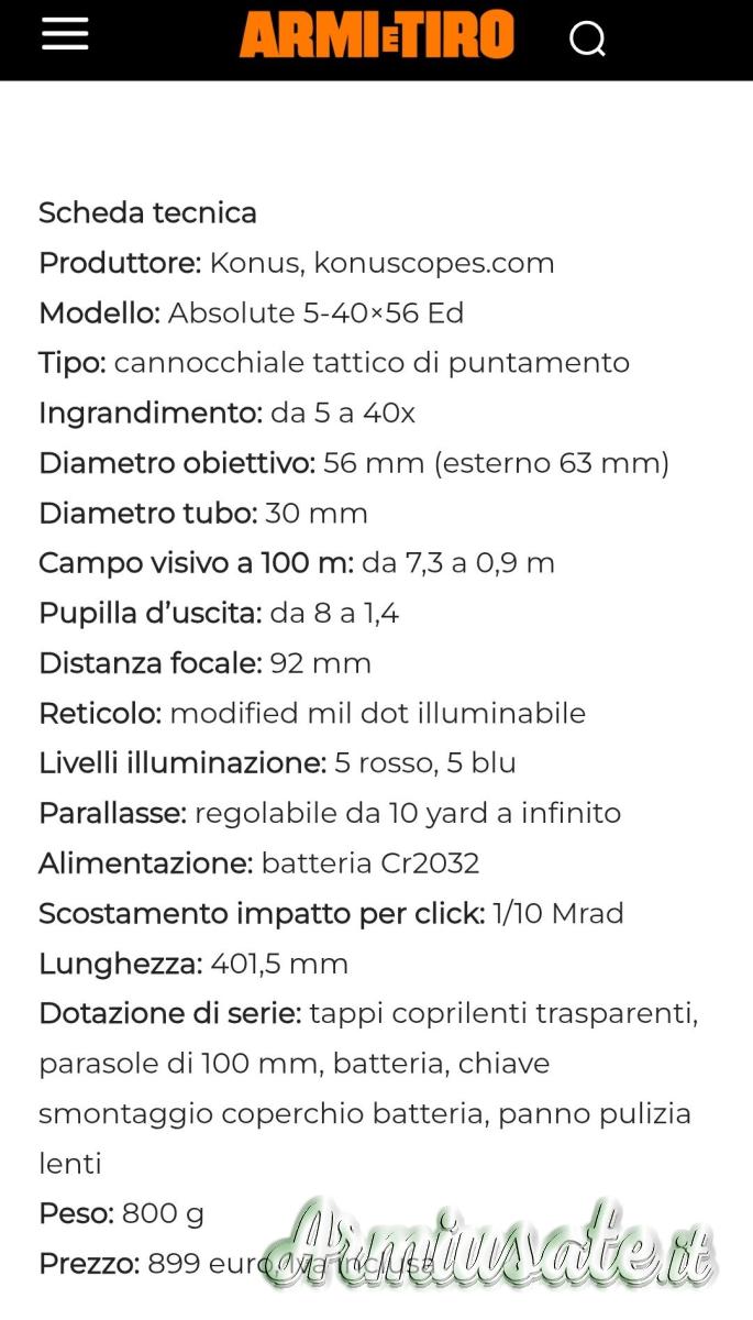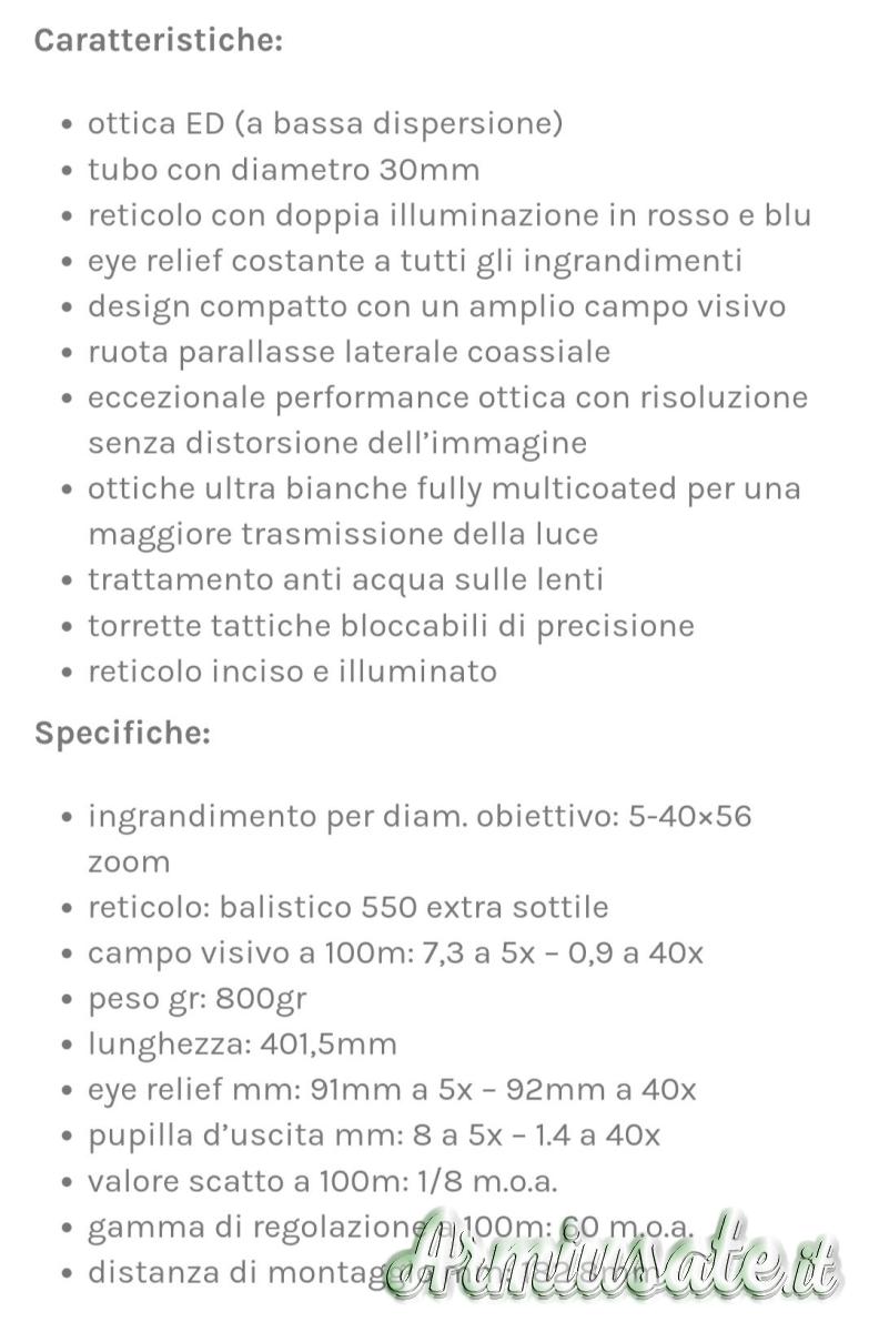 | Ingrandimento | 5-40x56 |