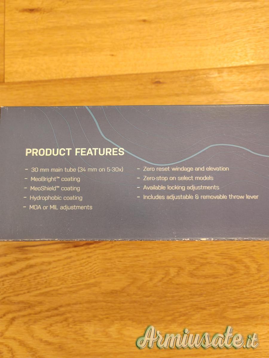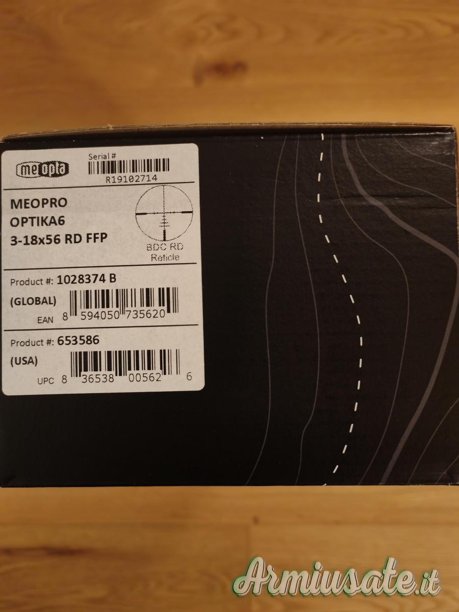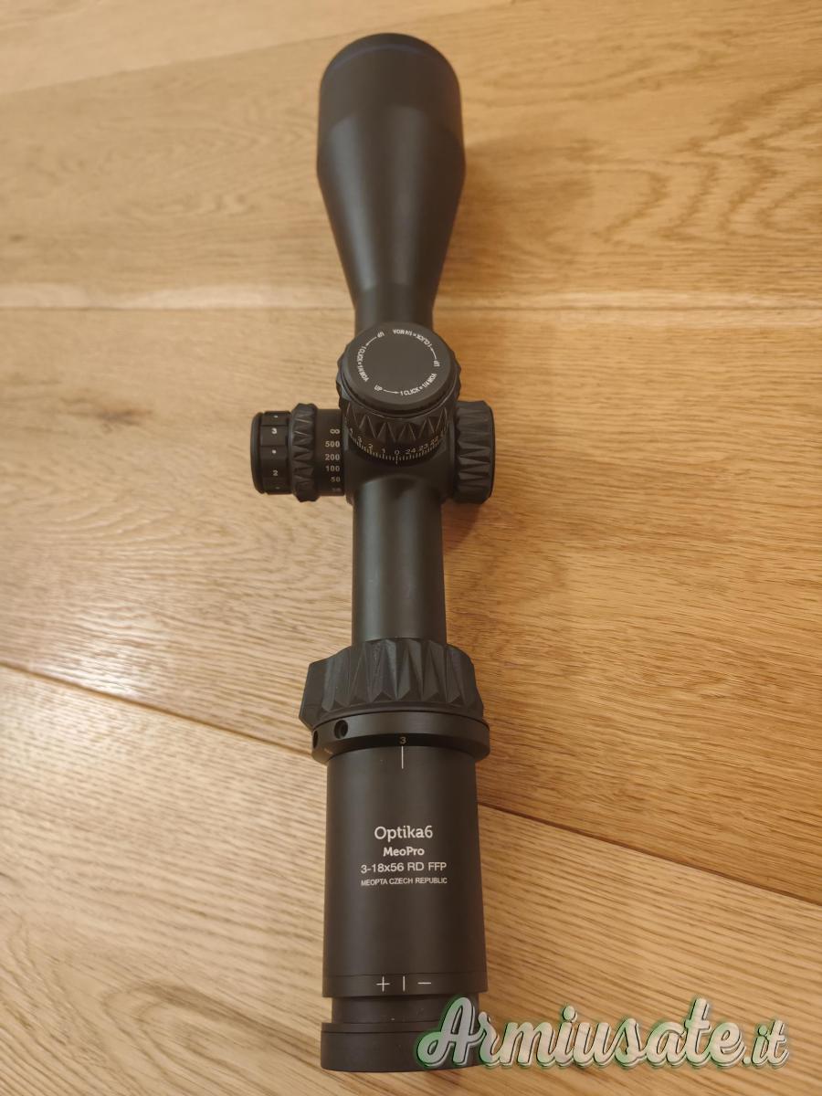 Cedo ottica Meopta Meopro Optika6 3–18x56 reticolo BDC RD sul primo piano focale (FFP) illuminato e torretta balistica. Tubo da 30 mm. Click di ¼ di MOA e Zero Stop. Correttore di Parallasse da 10 yarde ad infinito. Ottica inutilizzata, acquistata nel giugno 2022 (scadenza garanzia 2032), perfetta e pari a nuovo. Completa di scatola originale e di tutto il suo corredo. Cedo ad € 570 non trattabili, preferendo consegna a mano; in caso di spedizione le spese saranno a carico dell'acquirente.