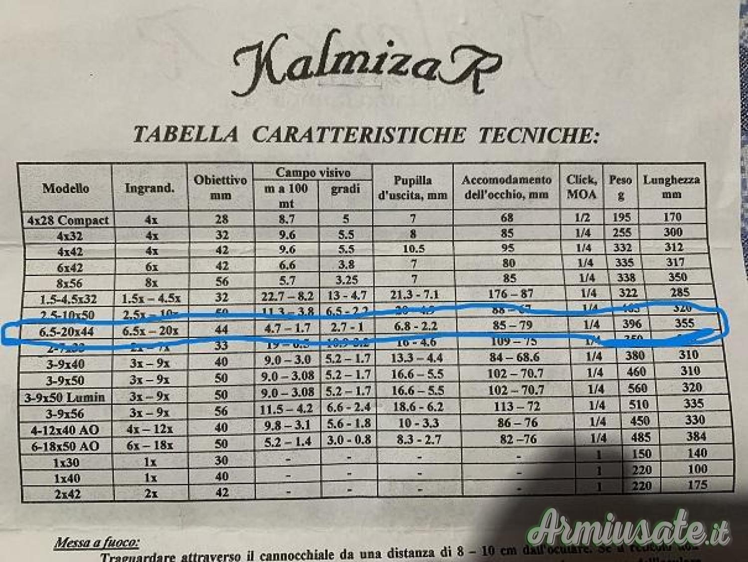 | Ingrandimento | 6-20X44 |