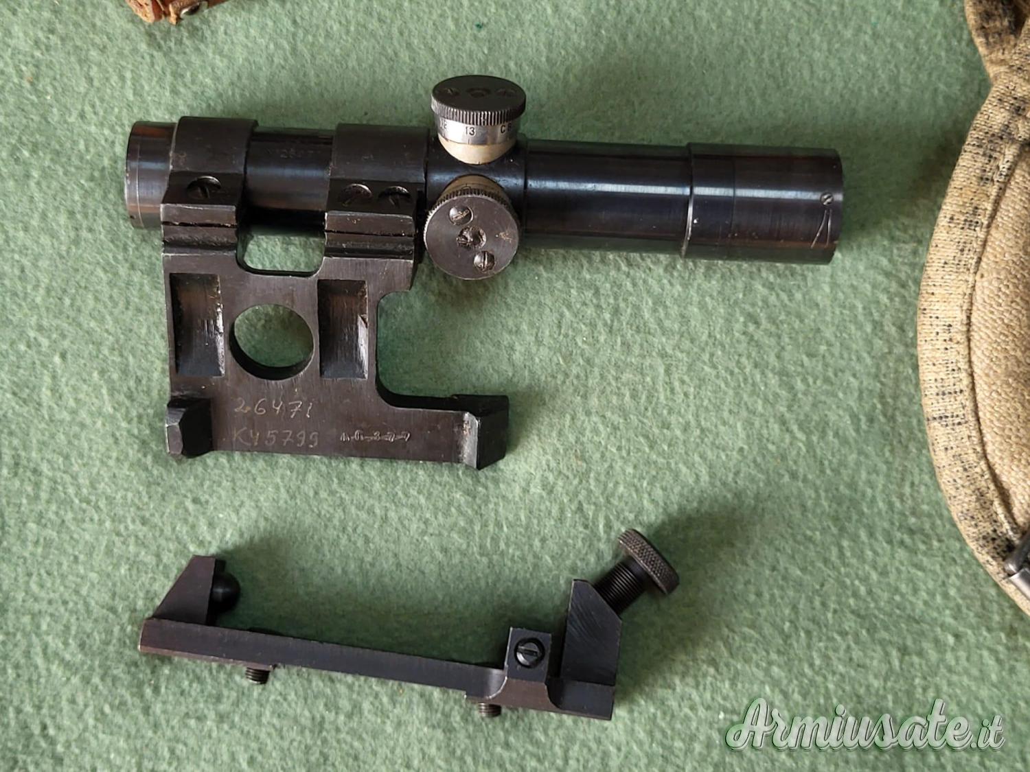 Celebre cannocchiale di mira sovietico, prodotto a partire dagli anni '30, e il riferimento "PU 1941" si collega direttamente al suo uso storico, in particolare sul fucile semiautomatico SVT-40 e sul fucile a otturatore girevole-scorrevole Mosin-Nagant 91 durante la Seconda Guerra Mondiale, rappresentando un'ottica affidabile e balisticamente avanzata per l'epoca, con mirini a tangente e guide laterali per il montaggio.