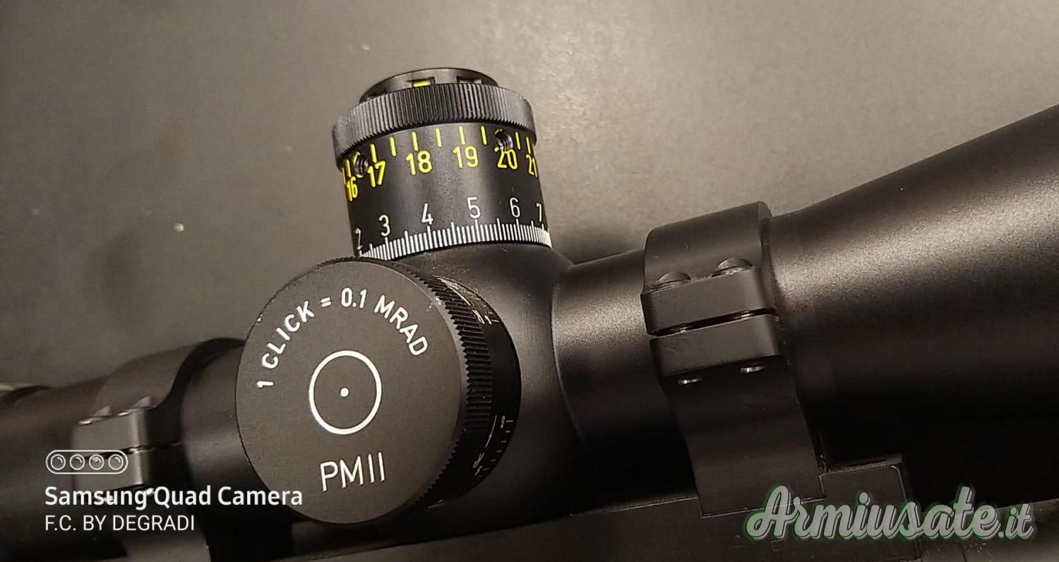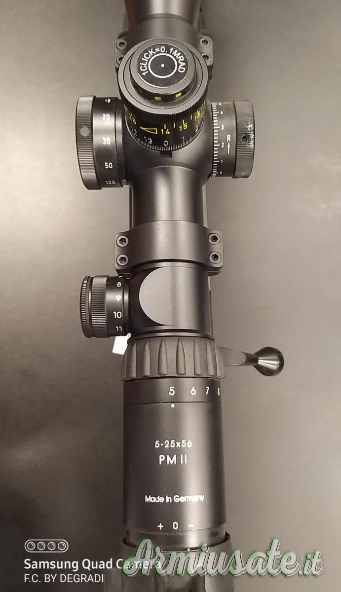 Dal punto di vista ottico, è da quasi vent'anni il punto di riferimento tra i cannocchiali 5-25x56. La parallasse può essere regolata con precisione a partire da 10 metri. Il design ad alte prestazioni del 5-25x56 PM II è in continuo sviluppo. La nuova regolazione dell'ingrandimento è realizzata in alluminio di alta qualità ed è compatibile con la leva di avanzamento. L'anello terminale in metallo con filettatura interna serve per il fissaggio degli accessori, offre una regolazione diottrica facile da impugnare e consente l'installazione dei pregiati coprioculari Tenebraex.