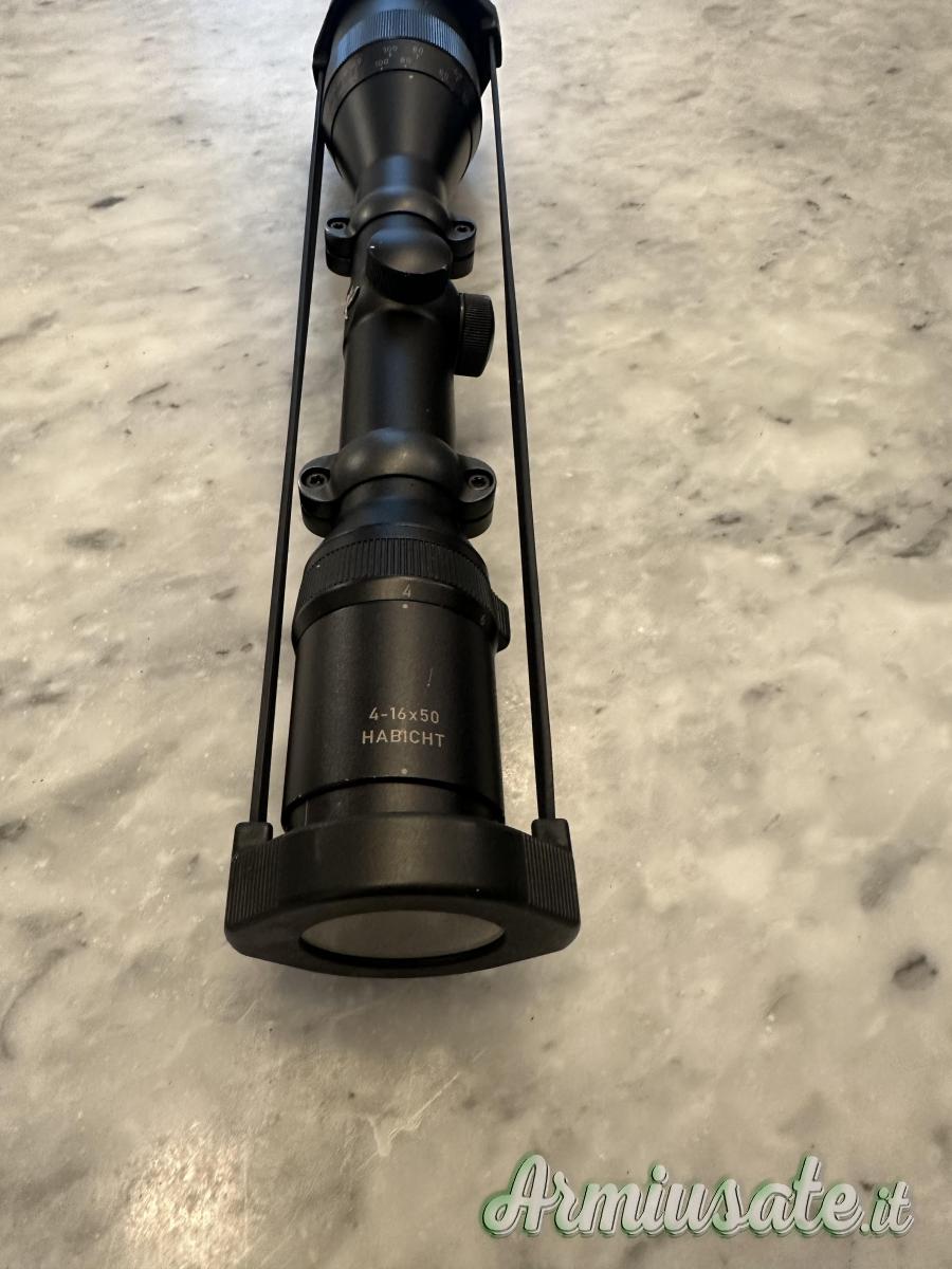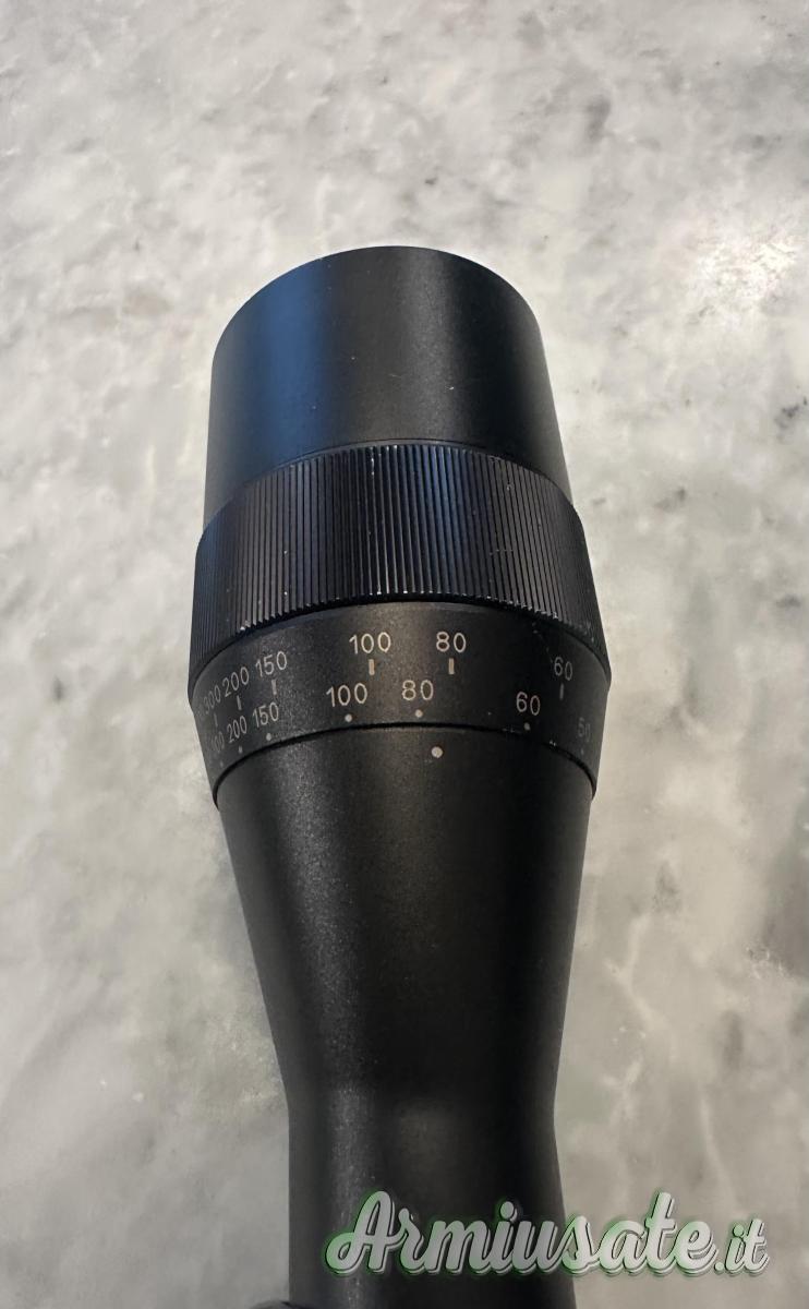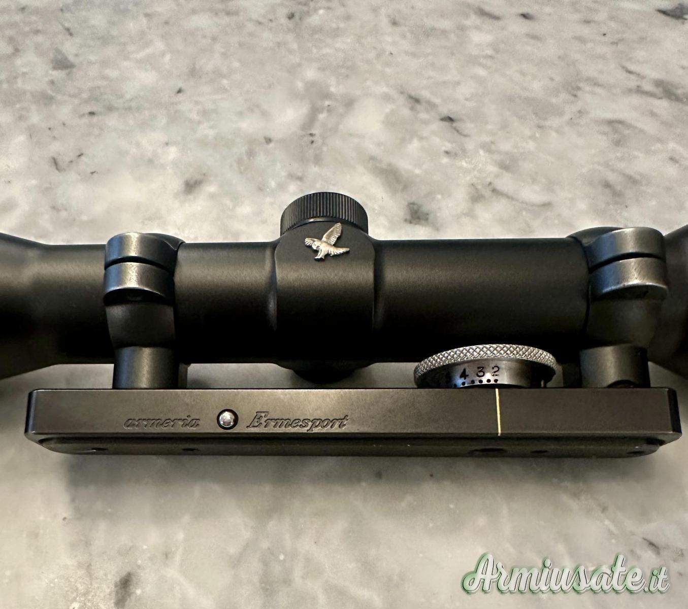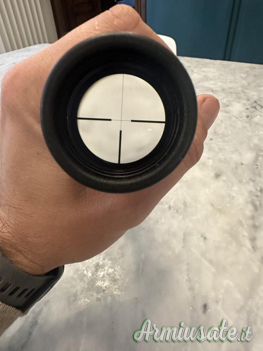 E’ montato su un compensatore Ermesport, usato su un Tikka 300 Win Mag. il prezzo è per il solo cannocchiale, il compensatore viene (150 Euro).