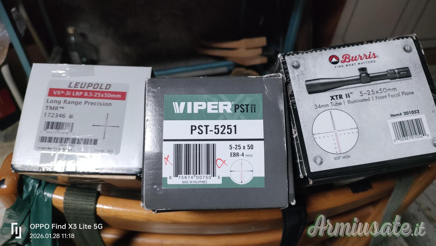 5-25x50, perfetto in ogni sua parte, tubo meccanica e lenti intonse, secondo piano focale, confezione originale, reticolo illuminabile. Chiedo 650,00 euro spedito. Burris XTR II, 5-25x56, tubo da 34, reticolo illuminato, primo piano focale, la meccanica è una roccia, tubo lenti intonse, confezione originale con tutto il suo kit. Chiedo 850,00 spedito. Altre foto a richiesta per chi fosse interessato.