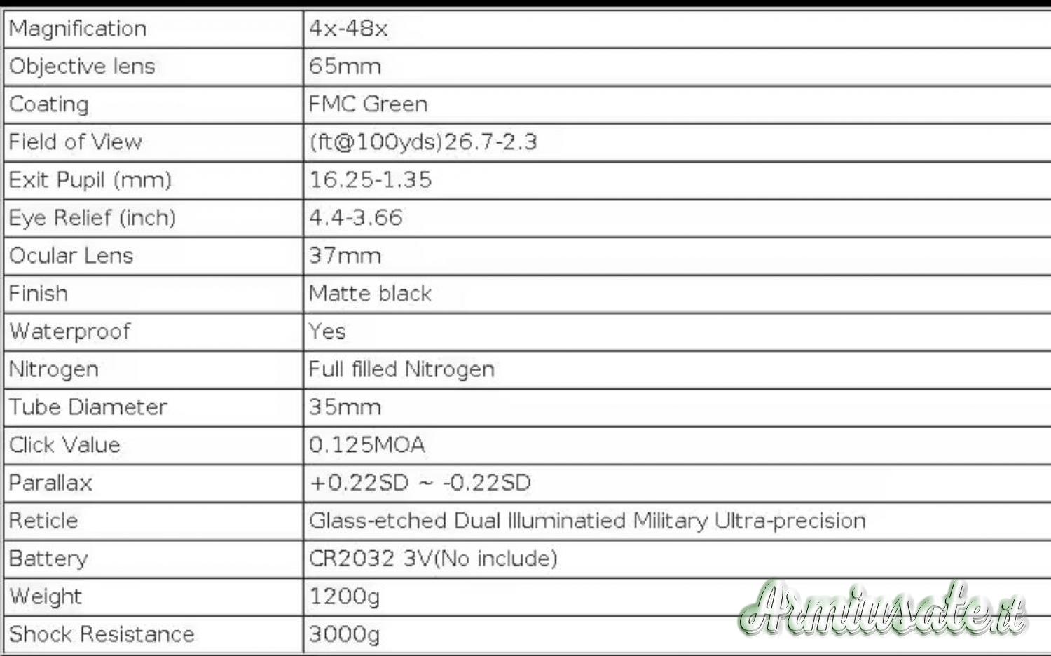 Ingrandimento | 4-48x65 |