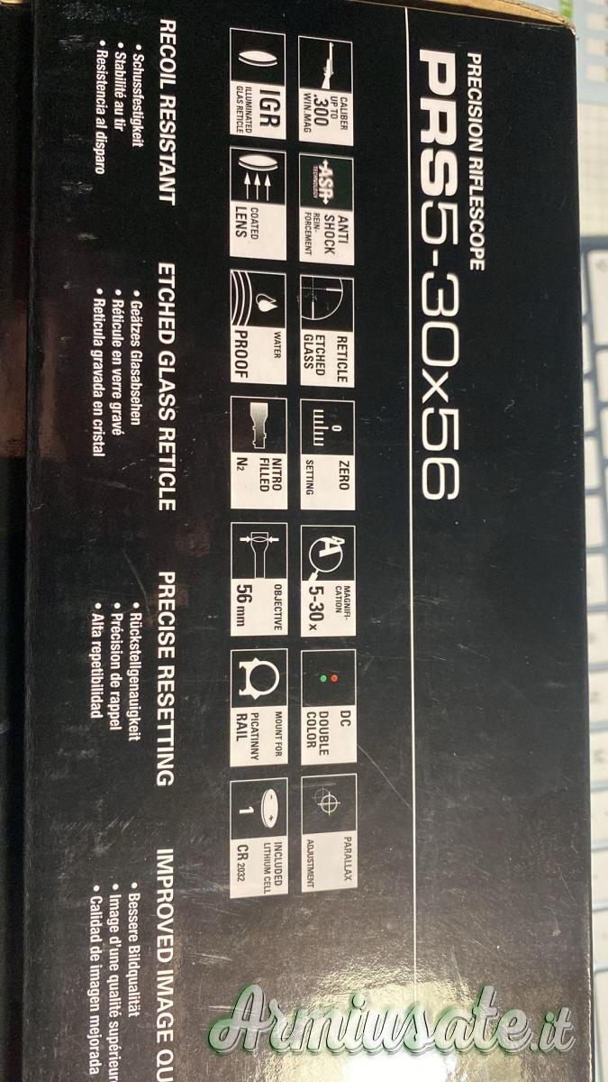 Questo modello ha un ingrandimento di 5-30x con un obiettivo da 56 mm. Il tubo ha un diametro di 30 mm ed è riempito di azoto per prevenire l'appannamento. Le lenti sono antigraffio e offrono un'ottima trasmissione della luce.