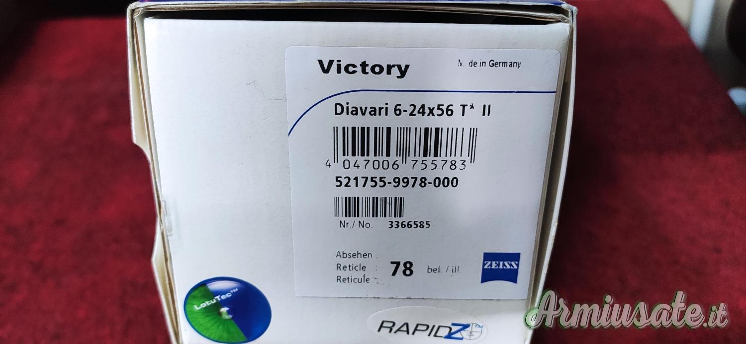 Zeiss scatola originale mod. Diavari 6-24x56 in dotazione tutti i documenti di garanzia libretto d'istruzione e pezzuola pulisci lenti.