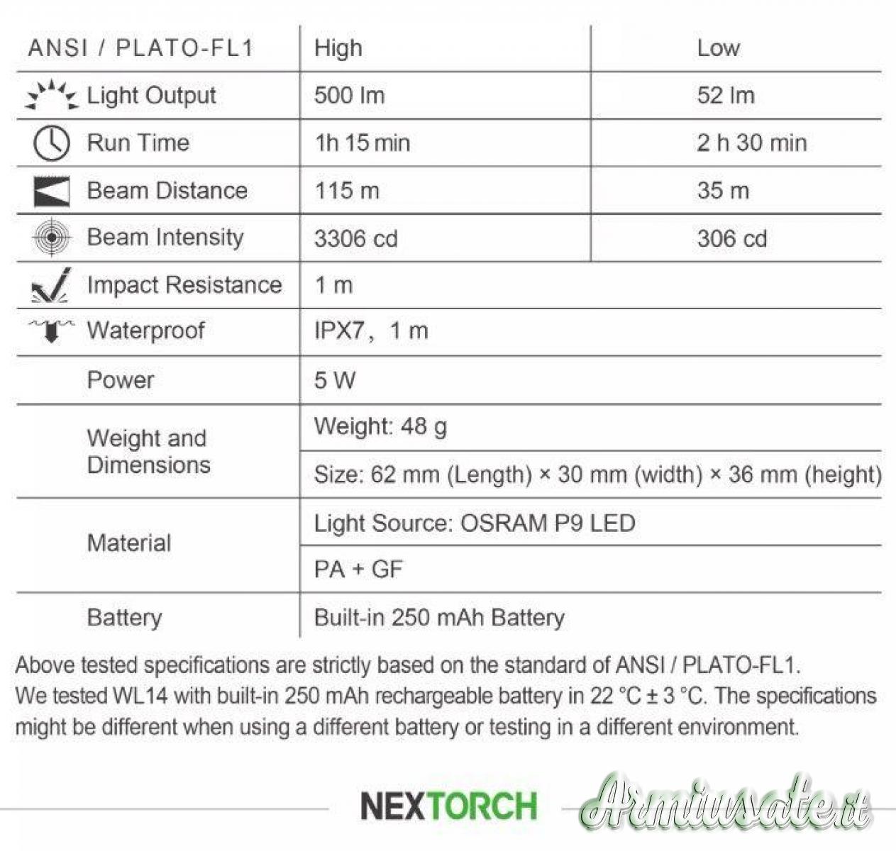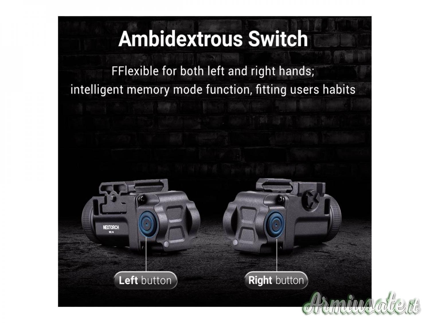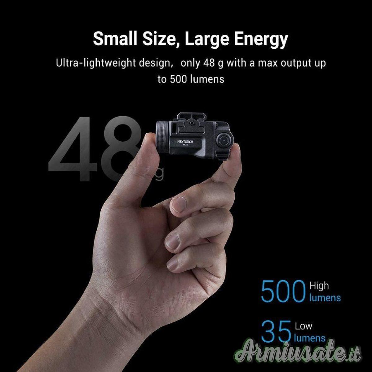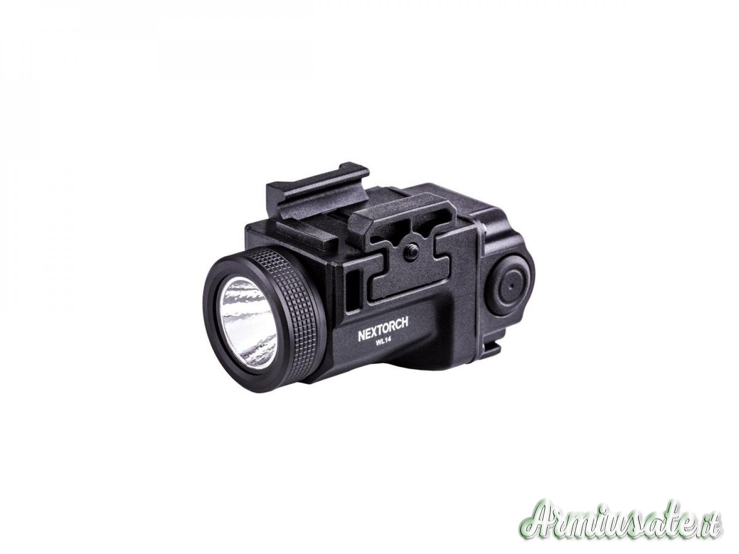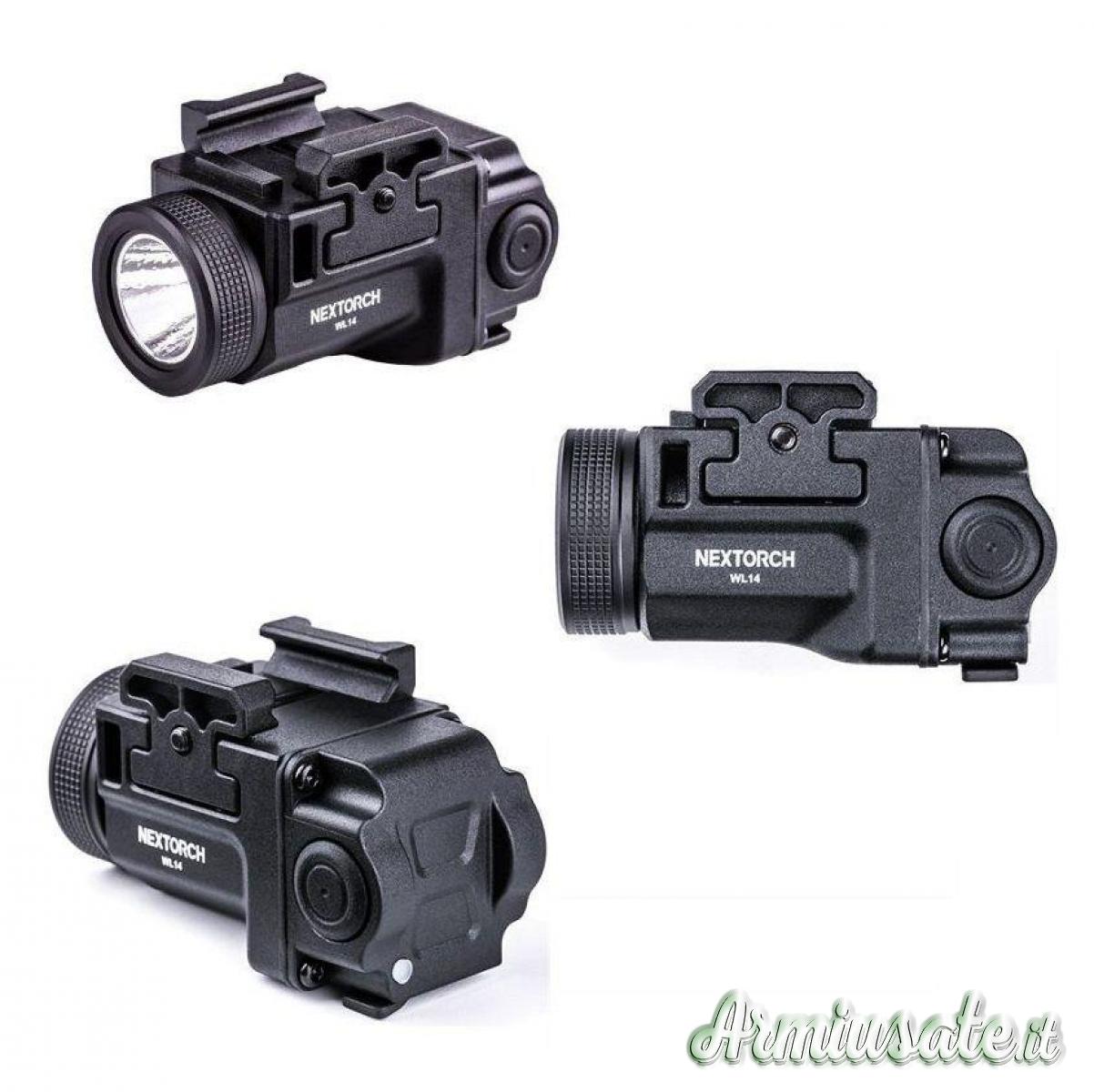 WL14 è una torcia da pistola compatta e leggera, che offre una potenza massima di 500 lumens e una distanza del raggio di 130 m circa.