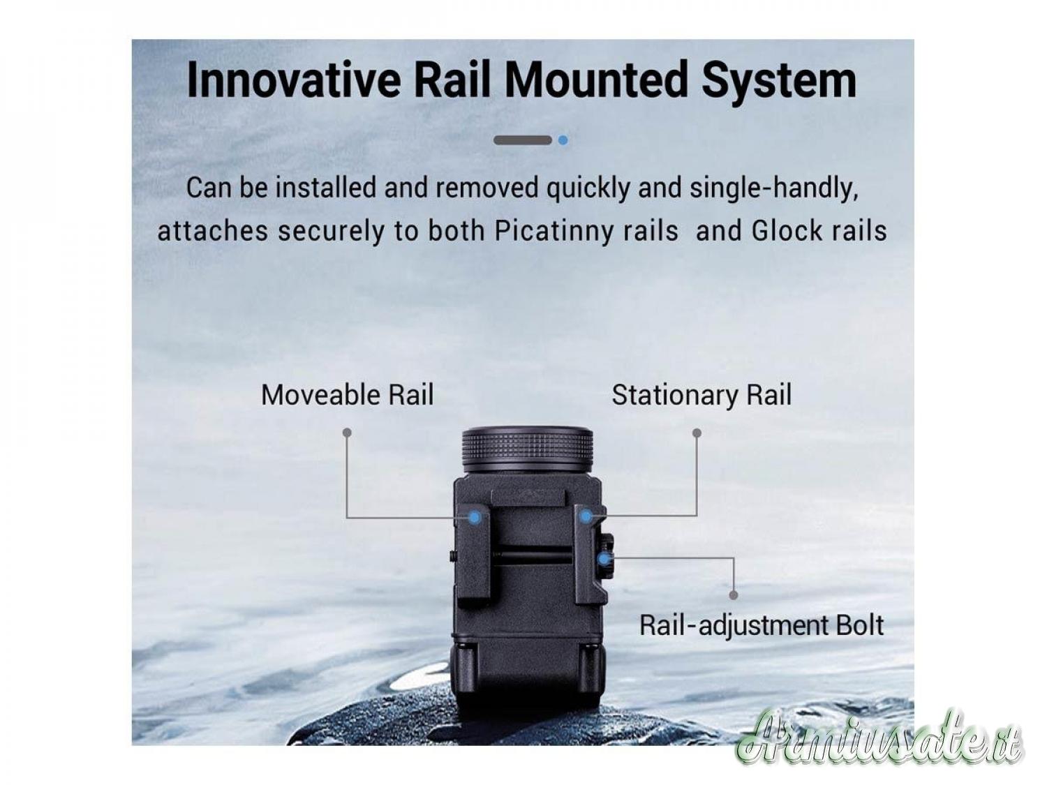 È compatibile con le slitte Picatinny e Glock.