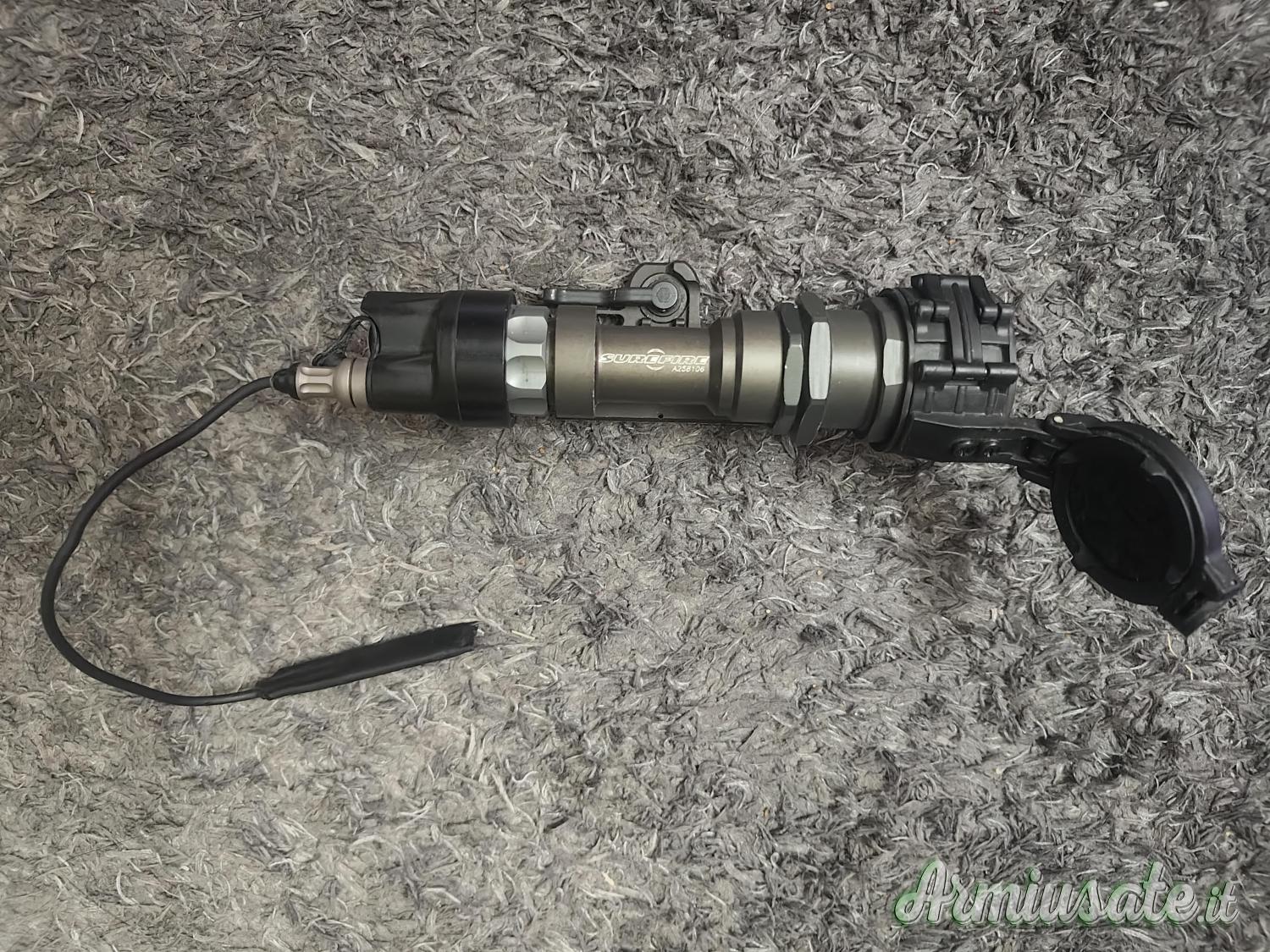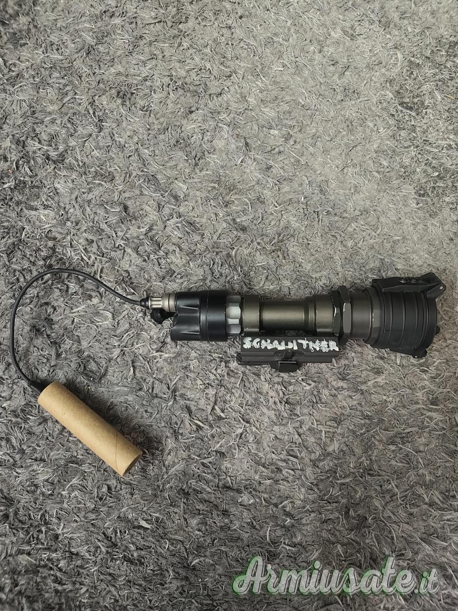Surefire M951 con testa LED Malkoff M61. Ha delle scritte bianche ed è usato ma perfettamente funzionante. Realizzata con una combinazione di alluminio e materiali plastici, questa torcia è leggera ma robusta. Alimentata a batteria, utilizza la tecnologia LED per offrire un fascio di luce brillante e focalizzato. Con una sola modalità di illuminazione, garantisce una fonte di luce affidabile e costante per diverse situazioni. Ideale per attività all’aperto, situazioni di emergenza o per l’uso quotidiano, la torcia tattica SureFire M952 Black è uno strumento versatile e affidabile.