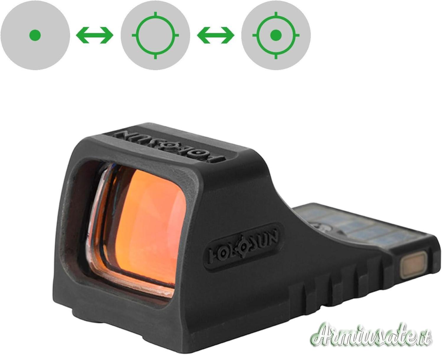 Reticolo intercambiabile. Scegli tra un punto da 2 MOA o un cerchio da 32 MOA o un reticolo combinato (cerchio e punto)