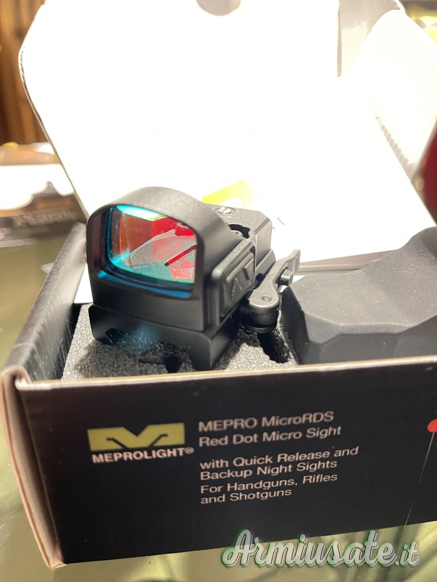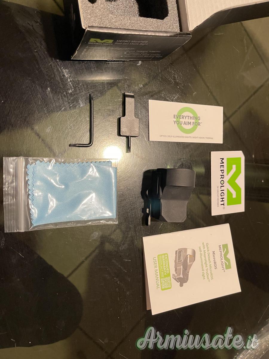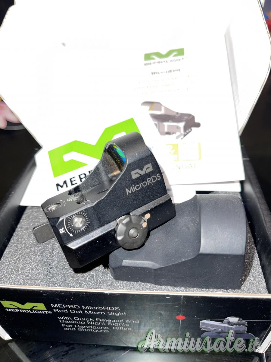 L'upgrade più rapido e semplice nella storia della precisione. Il Mepro microRDS offre l'acquisizione rapida del bersaglio di un mirino ottico red dot da fucile a dimensione intera in un mirino compatto per pistola. Dotato di un kit adattatore brevettato con sgancio rapido (QD) che si monta facilmente utilizzando lo slot per il mirino posteriore esistente della pistola; non è necessario forare, filettare o l'intervento di un armaiolo. È l'unica soluzione red dot che si monta e smonta istantaneamente senza dover ri-azzerare, con un adattatore che offre anche un mirino autoilluminato Meprolight® TruDot™ come backup quando l'ottica red dot viene rimossa. Progettato per essere montato in pochi minuti su qualsiasi pistola con capacità red dot. Funziona anche egregiamente come mirino red dot per distanze ravvicinate e come mirino di riserva per fucili e fucili a pompa.
