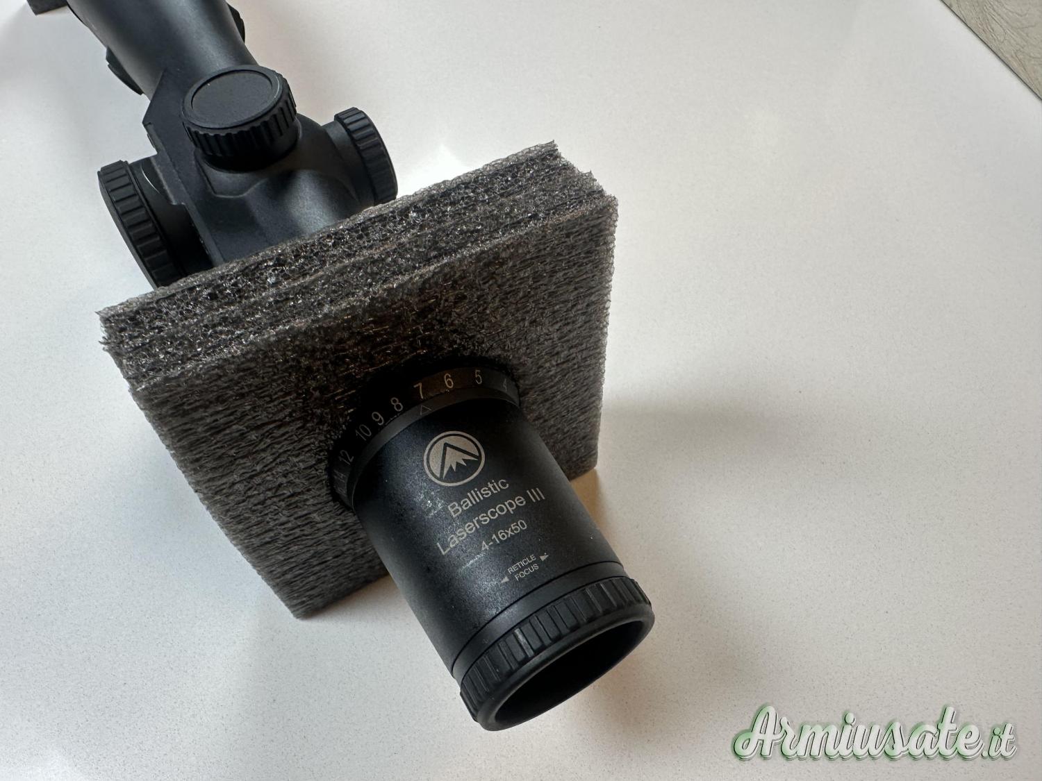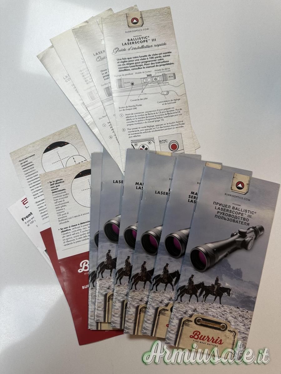 Completa di tutti gli accessori e manuali, non necessita di anelli per il montaggio, ottima per il tiro di caccia fino a 500-600 m.