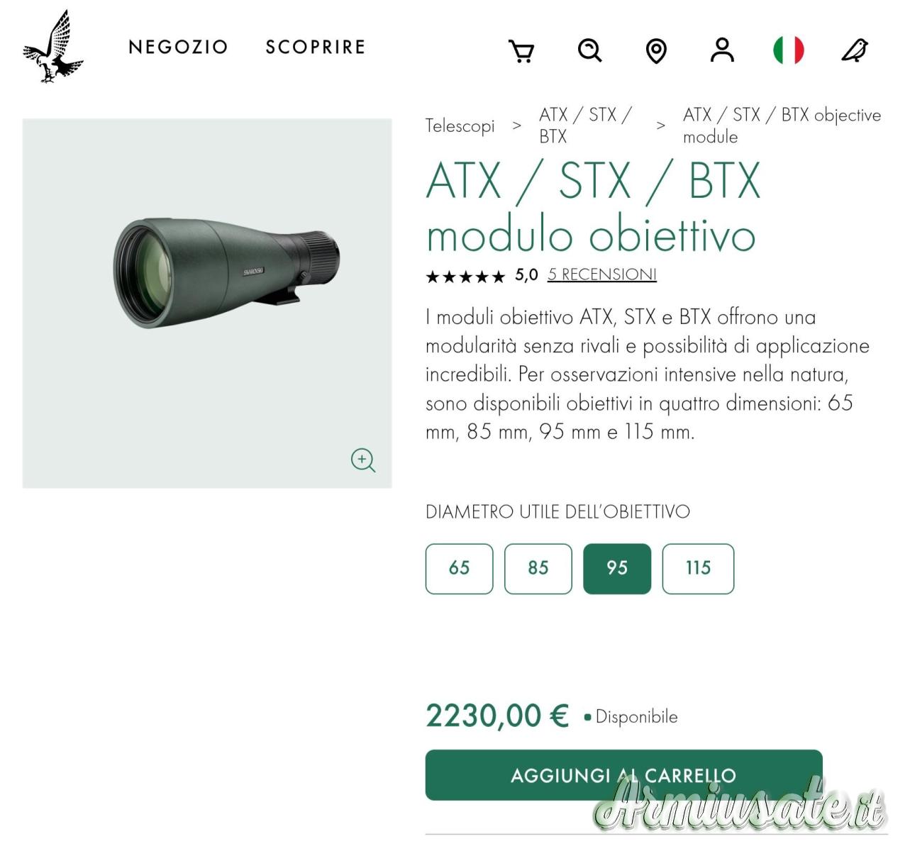 | Ingrandimento | 95 mm |