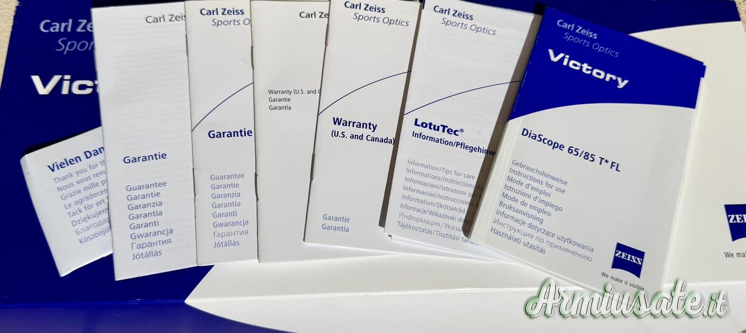 tappi oculare e obiettivo, tutte le scatole e carte.