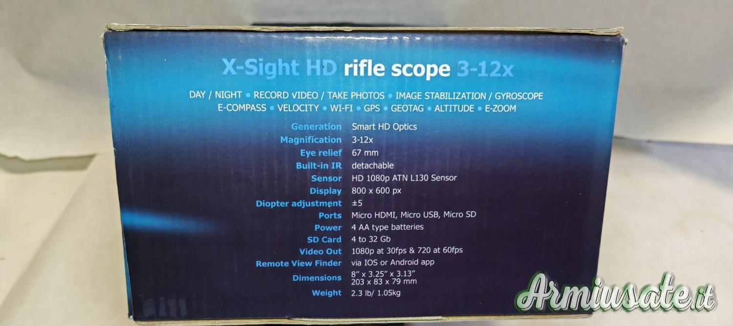 Visore notturno ATN X-Sight 3x12 Night Vision Rifle-scope modello DGWSXS312A. Questo Night Vision Scope di ATN è alimentato dall'ATSidian Core di ATN che esegue una suite di sensori per coprire tutte le tue esigenze. Perfetta chiarezza di giorno o di notte, GPS, Geotag, WiFi, E-zoom, Registrazione video HD / Immagini, Bussola, Giroscopio e soluzioni Smart Shooting, l' ATN X-Sight Rifle-scope è ideale per quasi tutti gli ambienti. Per un ottimo modo per assicurarti di utilizzare la migliore ottica possibile, scegli l' obiettivo X-Sight NV AT-3-12x .