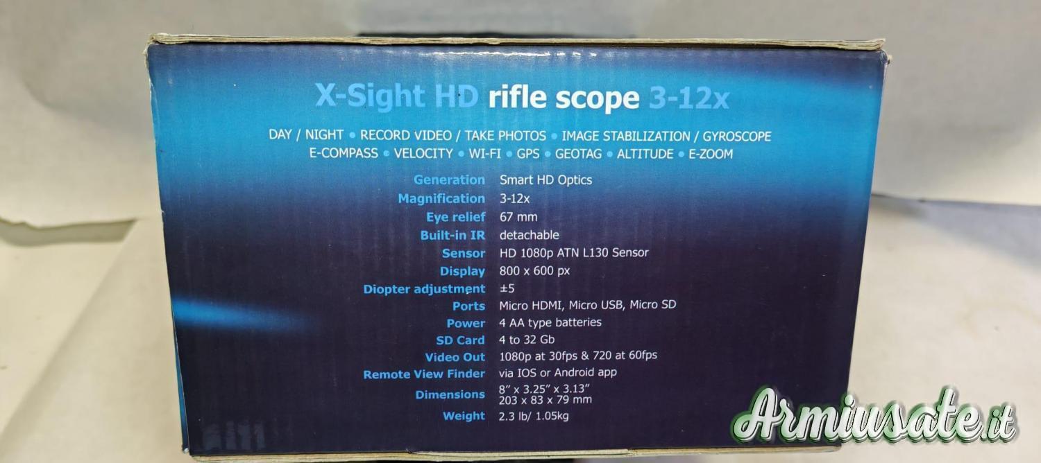 Visore notturno ATN X-Sight 3x12 Night Vision Rifle-scope modello DGWSXS312A. Questo Night Vision Scope di ATN è alimentato dall'ATSidian Core di ATN che esegue una suite di sensori per coprire tutte le tue esigenze. Perfetta chiarezza di giorno o di notte, GPS, Geotag, WiFi, E-zoom, Registrazione video HD / Immagini, Bussola, Giroscopio e soluzioni Smart Shooting, l' ATN X-Sight Rifle-scope è ideale per quasi tutti gli ambienti. Per un ottimo modo per assicurarti di utilizzare la migliore ottica possibile, scegli l' obiettivo X-Sight NV AT-3-12x